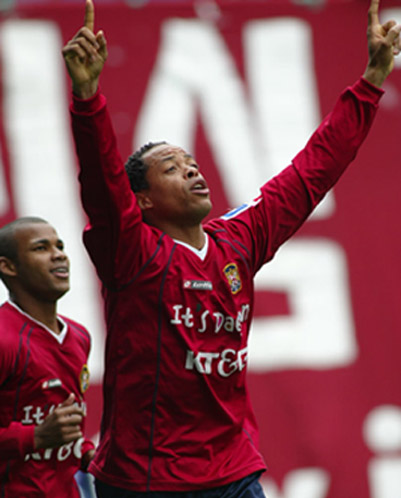 8경기 연속 무패 기록을 이어가고 있는 대전 시티즌이 컵대회 B조 2위인 부산 아이파크와 오는 9일 홈서 삼성 하우젠컵 2007 8라운드 대결을 벌인다. 지난 5일 정규리그 경기서 FC 서울을 시종일관 몰아붙였으나 0-0 무승부를 기록했던 대전의 최윤겸 감독은 경기 후 "골을 넣지 못해 너무 아쉽지만 내용면에서는 완전히 장악했다"며 팀의 상승세에 확신을 나타낸 바있다. 대전은 '삼바 듀오' 데닐손-페르난도 투톱으로 최전방을 꾸려가고 있다. 대전은 컵대회 B조에서 1승 4무 2패를 기록하며 5위에 처져 있지만 최근 경기를 놓고 본다면 뒷심 부족으로 놓친 아쉬운 경기가 많았다. 데닐손이 전 경기에 출전하면서 피로가 쌓여가고 있지만 그의 파트너인 페르난도에게 기대를 걸어 볼 만하다. 외국 무대에 처음으로 나온 페르난도의 장점은 바로 빠른 스피드와 개인기. 특히 개인기는 K리그 수비수들이 반드시 경계해야 할 수준이다. 이에 맞설 앤디 에글리 감독의 부산은 지난 5일 정규리그 인천과의 경기서 2-2 무승부를 기록했다. 하지만 이날 경기서 오랫만에 득점포를 가동하며 선수들의 컨디션이 올라 오고 있다. 부산은 빠른 스피드를 이용한 공격을 전개할 것으로 보인다. 이승현이 부상으로 빠졌지만 한정화를 이용해 상대의 수비진을 흔들고 중앙에서 안영학이 전방의 박성호와 루시아노에게 득점 기회를 만들며 대전의 골문을 위협할 전망이다. 대전과 부산 모두 승리에 목말라 있는 상황이다. 대전은 8경기 연속 무패라고는 하지만 그 내용은 2승 6무로 승리가 너무 적다. 그리고 부산은 2위 사수와 컵대회 플레이오프진출 이라는 성과를 만들어 내야 하기 때문에 양팀의 대결이 기대된다. 10bird@osen.co.kr 페르난도-데닐손=대전 시티즌 제공.