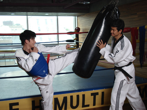 MBC '거침없이 하이킥'의 김혜성이 2004년 아테네 올림픽 태권도 헤비급 금메달리스트인 문대성과 깜짝 만남을 가졌다. 김혜성은 5월 8일 오후 강남의 한 피트니스 클럽에서 진행된 인스타일 6월호 ‘스포츠스타와 셀러브리티의 만남’ 촬영을 위해 문대성과 만나 태권도 대결을 펼쳤다. 초등학교 시절 태권도 선수로 활약하기도 했던 김혜성은 연기자로 데뷔 후 바쁜 일정 탓에 태권도를 할 기회가 없었다. "이번 촬영 덕분에 6년 만에 도복을 입어 본다"는 김혜성은 "무척 떨린다"며 설레는 마음을 감추지 못했다. 문대성은 김혜성을 만나자마자 "‘거침없이 하이킥’에서 연기하는 모습을 봤는데 첫 인상이 무척 착해 보인다"며 말문을 열었다. 그러자 김혜성은 "태권도로 그랜드 슬램을 달성한 국민적인 스포츠 영웅인 스타를 실제로 만나 이야기도 하고 함께 태권도를 하게 돼서 영광"이라면서 "어릴 적 선수 시절에 굉장히 좋아했다"고 털어놓았다. 특히 이날 김혜성과 문대성은 서로 미처 알지 못했던 특이한 인연 때문에 적잖이 놀라기도 했다. 현재 동아대학교 교수로 재직하고 있는 문대성이 운영하는 태권도 교실이 바로 김혜성이 초등학교 시절 태권도를 처음 시작했던 체육관이었던 것. 이 같은 인연으로 더욱 친해진 두 사람은 도복을 입고 절도 있는 태권도 자세를 선보였으며 김혜성은 시원한 발차기로 위력적인 모습을 선보여 주위 스태프들을 놀라게 했다. 부드러운 꽃미남 이미지가 강한 김혜성의 돌려 차기에 문대성도 깊은 인상을 받았다고 전했다. 촬영이 다 끝난 후 문대성은 김혜성에게 "부산에 오면 언제든 연락하라"며 연락처를 주고 받았고 김혜성도 "고향이 부산인 만큼 조만간 다시 만나서 얘기 나눌 수 있는 기회가 생겼으면 좋겠다"고 화답했다. hellow0827@osen.co.kr
