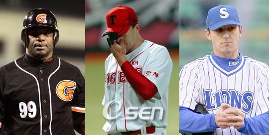 따스한 5월이지만 프로야구계에 불어닥친 칼바람은 매섭다. 숨막히는 순위권 싸움이 펼쳐지는 가운데 제 기량을 발휘하지 못하는 용병의 '고향 앞으로'가 잇달고 있다. 롯데가 가장 먼저 칼을 빼들었다. 롯데는 지난 11일 '검은 갈매기' 펠릭스 호세를 퇴출하고 멕시칸리그 출신 에두아르도 리오스와 총액 16만 달러에 입단 계약을 맺었다. 최근 수 년간 롯데에서 호세는 가히 상징적인 존재였다. 메이저리그 올스타 출신 외야수 호세는 지난 1999년 롯데에 입단, 타율 3할2푼7리, 151안타, 36홈런, 122타점으로 맹활약하며 검은 갈매기 돌풍을 불러 일으키며 외야수 부문 골든 글러브도 수상했다. 2001년에도 타율 3할3푼5리, 123안타, 36홈런, 102타점을 기록하며 장타율(6할9푼5리)과 출루율(5할3리) 1위를 차지했다. 메이저리그 재진출 등으로 몇 년간 롯데를 애태웠던 호세는 지난 시즌 롯데로 돌아와 타율 2할7푼7리, 115안타, 22홈런, 78타점으로 불혹이 넘은 나이에도 불구하고 녹슬지 않은 기량을 보여줬다. 그러나 롯데는 호세가 아킬레스건 부상으로 인해 예전의 파워 배팅을 전혀 보여주지 못하면서 중심 타선의 약화를 가져왔고 팬들의 염원인 포스트시즌 진출 목표를 위해 호세를 교체하게 된 것. KIA의 에서튼도 같은 날 살생부에 올랐다. KIA는 용병 투수 마이클 에서튼을 보내고 제이슨 홀 스코비를 영입했다. 메이저리그 토론토 블루제이스 산하 마이너 트리플A 시리큐스에서 뛰고 있는 스코비는 직구 최고구속 145km로 커브와 슬라이더, 체인지업 등 다양한 변화구와 제구력이 수준급이라는 평가를 받고 있다. 올 시즌 6경기에 등판한 에서튼은 2승 2패에 방어율 4.22를 기록했으나 상대를 압도하는 구위가 아닌 데다 스피드 변화구 제구력 모두 낙제점을 받아 퇴출의 칼날을 피할 수 없었다. 삼성도 마찬가지. 삼성은 12일 윌슨을 퇴출하고 마이너리그 출신 좌완 브라이언 메존과 계약금 5만 달러, 연봉 18만 달러 등 총 23만 달러에 계약했다. 윌슨은 지난 11일 대구 현대전에 선발 등판해 2⅔이닝 7피안타 2볼넷 3실점으로 부진하는 등 올 시즌 7경기에서 1승 6패(38이닝 41피안타 12볼넷 9탈삼진 19실점)에 방어율 3.79에 그쳤다. 5월에 몰아 닥친 퇴출 칼바람에 각 팀 용병들은 행여나 이번에는 자신의 차례가 되지 않을까 노심초사하고 있을지도 모른다. what@osen.co.kr 호세-에서튼-윌슨.