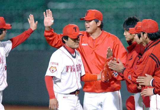 KIA에 입단한 빅초이 최희섭(28)이 팀에 합류한 날은 화제 만발이었다. 먼저 엄청난 몸집(196cm)에 보는 사람들이 입을 다물지 못했다. 최희섭은 지난 12일 오후 광구구장에 도착하자마자 그라운드에서 서정환 감독에게 입단 신고를 한 뒤 코치실과 선수단 라커룸을 차례로 들러 인사를 했다. 수십 명의 취재진이 따라붙었다. 그런데 라커룸으로 가는 길은 천장이 낮은 편이다. 최희섭의 머리가 천장을 스칠 정도로 아찔했다. 굽이 조금이라도 높은 신발을 신으면 머리가 닿을 위험성도 있을 정도였다. KIA 코치들과 직원들도 "저렇게 클 줄 몰랐다"고 놀라는 모습이었다. "이러다간 천장을 높이는 공사를 해야되는 것 아니냐"는 우스개 소리가 나왔다. 라커룸에서는 광주일고 동문들과 반갑게 해후했다. 특이 최희섭의 동기생인 이현곤은 많은 취재진 때문에 잠시 쭈뼛했으나 이내 반갑게 포옹하며 친구의 입단을 반겼다. 주장 이종범을 비롯 김종국 김상훈 등 광주일고 선배들도 "어, 희섭이 왔네"라며 활짝 웃었다. 한쪽에서는 "동문 회비부터 받자"는 농담도 나왔다. 이들은 최희섭이 하루 빨리 팀에 적응할 수 있도록 많은 도움을 줄 것으로 예상된다. 감독과 코치, KIA 직원들도 최희섭의 팀 합류와 함께 상당히 들뜬 모습이었다. 6연패로 근심의 얼굴을 하고 있던 서 감독은 "팀의 10년을 이끌 수 있는 선수"라며 환한 얼굴 표정을 지었다. 최희섭의 도착을 기다리던 직원들도 "드디어 왔다"며 토종 4번타자로서 팀 장타력 기근을 해갈해달라는 기대감을 표시하기도 했다. 이날 KIA와 경기를 위해 광주구장을 찾은 SK 이만수 수석코치도 한마디 거들었다. 이코치는 시카고 화이트삭스 코치 시절 최희섭과 여러 차례 만났다. 특유의 활달한 몸짓과 함께 "너, 오늘 안나오지? 될수록 천천히 나와라"라며 은근히 최희섭의 장타력을 두려워하는 농담을 했다. 최희섭은 "방금 선수등록 됐으니 당장이라도 뛸 수 있다"며 으름장(?)을 놓았다. sunny@osen.co.kr 최희섭이 지난 12일 광주 경기 후 그라운드로 나와 선후배들과 하이파이브를 나누고 있다=KIA 타이거즈 제공.
