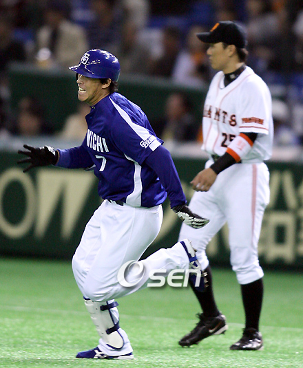 ‘놓친 열차는 아름답다’고 하지만, ‘놓친 고기’는 마냥 커보일 수밖에 없다. 13일, 이승엽(31. 요미우리 자이언츠)과 이병규(33. 주니치 드래건스)가 그랬다. 올 시즌 센트럴리그 구단 가운데 유일하게 주니치 드래건스에만 홈런을 뺏어내지 못했던 이승엽은 이날 도쿄돔 홈구장에서 가진 주니치전 6회 2사 후 3번째 타석에서 오른쪽 홈런성 타구를 날렸으나 그만 파울이 되고 말았다. 1-3으로 뒤지고 있던 상황에서 나선 이승엽은 주니치의 백전노장 좌완 선발 야마모토 마사(42)를 상대로 볼카운트 1-1에서 제 3구째 몸쪽 낮은 직구에 방망이를 힘차게 돌렸으나 타구가 오른쪽 폴대를 아슬아슬하게 빗나가고 말았다. 결국 이승엽은 1루수 땅볼로 물러났다. 이승엽은 1회 2사 1루의 첫 타석과 3회 선두로 나선 두 번째 타석에서는 우익수 뜬공과 포수 파울플라이에 그쳤다. 이승엽은 3-5로 이끌리고 있던 8회 4번째 타석에서는 1사 후 안타로 나간 오가사와라 미치히로를 1루에 두고 야마모토와 다시 맞서 2구째 바깥쪽 싱커를 노려쳤으나 잘 맞은 타구가 좌익수 정면으로 날아가고 말았다. 4타수 무안타를 기록한 이승엽은 이로써 5게임, 22타석 연속 무안타의 긴 침묵에 빠졌고 타율은 2할4푼으로 미끄럼탔다. 한편 주니치의 7번타자 겸 중견수로 선발 출장한 이병규(33)는 1-1로 팽팽하던 4회 2사 1루에서 맞이한 두 번째 타석에서 우익수 실수로 출루, 2루까지 진루했다. 볼카운트 2-3에서 요미우리 선발 다카하시 히사노리(32)의 제 7구째 한복판 슬라이더(구속 123㎞)를 노려쳤으나 오른쪽 펜스 바로 앞에서 요미우리 우익수 다카하시 요시노부가 타구를 잡았다가 놓치는 바람에 1루주자 나카무라가 홈을 밟았다. 주니치가 2-1로 앞서게 된 행운의 일타였다. 이병규는 1-0으로 앞서 있던 2회 2사 후에 들어선 첫 타석에서는 다카하시의 바깥쪽 느린 커브(구속 111㎞)에 속아 헛손질, 삼진당했고 6회에는 2루수 땅볼로 물러났다. 5-3으로 앞서 있던 9회 선두타자로 나선 4번째 타석에서 이병규는 장첸밍의 2구째 체인지업을 노려쳤으나 이승엽과 마찬가지로 타구가 우측 폴대를 비켜 지나가는 파울홈런이 됐다. 삼진으로 타석을 마감한 이병규 역시 4타수 무안타로 타율이 2할5푼5리로 더 떨어졌다. 한편 주니치의 타이론 우즈는 2-1로 앞서 있던 6회 선두타자로 등장, 시즌 16호 솔로홈런을 터뜨려 리그 홈런더비 1위를 질주했다. 6-3으로 이긴 주니치는 요미우리에 올 시즌 상대전적에서 5승4패로 우위를 보였다. chuam@osen.co.kr