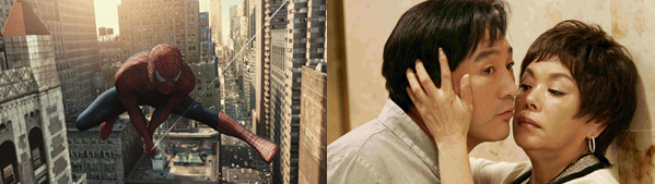 블록버스터 '스파이더맨 3'의 흥행 위세가 한풀 꺾였다. 지난 11~13일 3일동안 82만3000명(영화진흥위원회 집계) 관객 동원으로 개봉 첫 주말 157만명에서 50%가량 감소했다. 이로써 한 때 80%에 육박했던 점유율은 46.6%로 뚝 떨어졌다. 그럼에도 토비 맥과이어와 커스틴 던스트 주연의 이 영화는 타의 추종을 불허하는 흥행 속도로 기록하고 있다. 1일 개봉후 13일 만에 누적관객 363만명. 올 상반기 국내에서 개봉한 모든 영화를 통털어 단연 톱이다. '스파이더맨 3'의 돌풍 속에서 모처럼 한국 영화 '못말리는 결혼'이 선전을 했다. 10일 개봉한 유진 김수미 임채무 하석진 주연의 폭소극은 틈새 시장을 뚫고 들어가 33만명 관객을 불러들여 2위에 올랐다. 전주 차승원 주연의 감동 드라마 '아들'이 '스파이더맨 3'의 위세에 눌려 16만5000명으로 2위에 그쳤던 것에 비하면 선두와의 격차를 많이 좁힌 셈이다. 스릴러 '극락도 살인사건'이 8만명(누적관객 200만명)으로 3위, '아들'이 6만4000명으로 4위, 외화 '더블타겟'이 4만8000명으로 5위를 기록했다. 한편, '스파이더맨3'는 북미 지역에서도 2주연속 박스오피스 1위를 달렸다. 주말동안 6000만 달러를 벌어들여 북미 에서만 개봉후 2억42000만 달러 수익을 냈다. 사상 최대인 3억달러 제작비는 전세계 흥행에서 일찌감치 모두 뽑았다. mcgwire@osen.co.kr