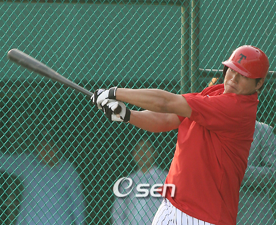 1군 선수 등록도 안했지만 효과는 만점이다. 지난 15일 수원구장은 미디어들이 몰려들었다. 홈팀 현대와 원정팀 KIA의 경기가 열리기전 KIA 선수단 훈련 때부터 신문 및 방송 등 언론 관계자들의 취재열기는 시작됐다. 평소 기자들이 많이 찾지 않던 수원구장에서 마치 포스트시즌을 방불케하는 취재열기였다. 이들의 초점은 전날(14일) 광주에서 KIA 입단식을 가진 후 1군 선수단과 함께 이동한 ‘빅초이’ 최희섭(28)이었다. 취재진은 최희섭의 수비 훈련 때부터 마지막 타격 훈련 때까지 일거수 일투족을 놓치지 않았다. 한국인 첫 빅리거 타자 출신인 최희섭의 한국무대 1군 첫 훈련 장면을 놓치지 않기 위해 분주했다. 최대 15억5000만 원을 투자한 KIA 구단으로선 일단 첫 번째 미디어의 관심을 끈 효과를 톡톡히 누린 셈이다. 구단으로선 홍보효과 만점이었다. 언론의 집중취재 대상으로 첫 효과를 봤다면 경기력 측면에서도 효과는 곧바로 나타났다. 최희섭의 타격 훈련 순서를 일부러 마지막 순서로 배치, 상대 현대 선수들의 기를 죽이는데 활용했다. 기대에 걸맞게 최희섭은 연신 홈런포를 터트리며 현대 선수단을 놀라게 했다. 프리 배팅 32개 타구 중 8개를 담장 너머로 보냈고 대부분의 타구가 펜스에 맞는 등 ‘총알타구’를 선보였다. 최희섭의 파워에 주눅이 든 탓인지 현대 타자들은 최희섭이 나오지 않은 본경기에서 KIA 선발 이상화의 투구에 눌려 빈타에 그쳤다. 5회까지 단 2안타에 그치는 빈공이었다. 반면 KIA 타자들의 방망이는 불을 뿜었다. 장성호의 만루 홈런 등 홈런포 3방을 날리며 신이 났다. 최희섭이 경기에 출장하지 않아도 큰 효과를 누리는 것에 만족하고 있는 KIA는 주말 두산전부터 최희섭이 본격 가동되면 더 큰 효과를 기대하고 있다. 서정환 감독이 “올 시즌 홈런 30개는 칠 것”이라고 기대하는 공격력 강화의 효과는 물론이고 투수들도 편하게 투구할 수 있는 유리한 환경이 조성될 것으로 전망되고 있다. 최희섭이 기대되로 공격에서 장타력을 살린다면 선발 투수들은 타선의 지원을 등에 없고 편안하게 투구, 기대 이상의 효과를 누릴 수 있다는 게 전문가들의 분석이다. 공격이 좋은 팀의 투수들은 편안한 투구로 기대 이상의 호투를 한다는 게 전문가들의 설명이다. 한마디로 타선이 강화되면 투수력도 덩달아 좋아진다는 시너지 효과이다. 아직까지는 최하위에 머물고 있지만 ‘이제부터 시작’이라는 KIA가 심혈을 기울여 영입한 최희섭을 앞세운 ‘최희섭 효과’로 상위권으로 치고 올라갈지 주목된다. sun@osen.co.kr 최희섭이 많은 취재진과 현대 선수단이 지켜보는 가운데 1군 선수단과의 첫 날 타격훈련서 장쾌한 타격을 선보이고 있다.