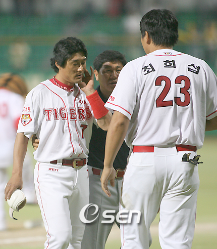 이종범(37)이 생애 최초로 끝내기 사구를 기록한 비화를 밝혔다. 이종범은 지난 22일 광주 롯데전에서 9-9 동점인 가운데 연장 12회말 1사 만루에서 롯데 투수 이왕기의 투구에 왼쪽 귀 뒷부분을 강타 당했다. 기록은 프로야구 통산 13번째 끝내기 사구(死球)였다. 팀 최고참이 살신성인으로 팀에 1승을 안겨주었다. 후배들은 짜릿한 끝내기 승리를 일구자 우르르 홈에 몰려왔지만 쓰러진 캡틴 이종범을 보고 웃어야 할지, 아니면 울어야 할지 갈피를 못잡았다. 한참이나 누워있다 겨우 일어난 이종범은 1루까지 거의 환자 폼으로 걸어가 베이스를 밟고 경기를 끝냈다. 다음 날인 23일 오전 이종범은 팀 지정병원인 한국병원에서 검진을 받았다. 다행히 아무런 이상이 없었다. 이날 오후 롯데전에 앞서 훈련 도중 이종범은 방망이를 들고 몇 차례 스윙을 하면서 "입을 벌리면 약간의 통증이 있다"며 씨익 웃었다. 그러면서 왜 자신이 사구를 맞게 됐는지 털어놓았다. 걸쭉한 전라도 사투리로 "입이 보살이여라. 입이. 얘들한테 맞고라도 나갈란다고 말하고 타석에 들어섰는데 진짜로 맞아부렀어라"고 말했다. 이어 "타석에서도 홈플레이트쪽으로 바짝 붙었는데 기분이 진짜로 맞을 것 같더라고요. 이왕기가 볼을 던지지 못하는 것 같은데 볼이 얼굴쪽으로 날라올 줄은 몰랐지요. 당연히 끝내기 사구는 프로야구 데뷔 이후 처음이지라"라고 설명했다. 후배들의 어정쩡한 태도가 더 웃겼다는 말에는 "'형님! 뒷통수에 굳은살 생기겠습니다'고 (김)종국이가 그럽디다"라며 껄껄 웃었다. 얼마 전 광주 두산전에서 두산 투수 김덕윤에게 같은 부위를 강타당한 것을 두고 놀린 것이다. sunny@osen.co.kr 지난 22일 끝내기 사구를 맞은 뒤 1루를 밟은 이종범이 턱 주변을 만지며 돌아오자 최희섭이 걱정스럽게 다가가고 있다.