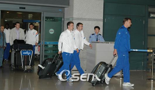 다음달 2일 상암동 서울 월드컵 경기장에서 한국 대표팀과 경기를 가질 네덜란드 대표팀이 30일 입국했다. 오후 1시 KE906편으로 입국한 네덜란드 대표팀은 모두 똑같은 트레이닝복을 맞추어 입고 인천공항으로 들어왔다. 마르코 반 바스텐 감독을 선두로 입국한 네덜란드 대표팀은 별다른 행사없이 숙소인 서울 남산 그랜드 하야트 호텔로 향했다. 반 바스텐 감독은 기자들의 질문에 별다른 대응을 하지 않고 지나갔다. 그는 "공식 기자회견에서 많은 것을 말하겠다"며 얘기한 후 입국장을 빠져나갔다. 리버풀 스트라이커 더크 카이트(리버풀)는 "피곤하지만 좋은 비행이었다" 며 "2일 펼쳐질 경기에서는 좋은 일이 일어날 것" 이라며 자신감을 내비치기도 했다. 클라스 얀 훈텔라르(아약스) 역시 "좋은 경기가 기대된다" 며 한국과의 일전을 기대하는 모습이었다. 이 날 네덜란드 대표팀은 총 35명의 선수들과 스태프들이 입국했고 오후 7시 30분 상암동 서울 월드컵 경기장에서 훈련 및 선수 개별 인터뷰를 진행할 예정이다. bbadagun@osen.co.kr