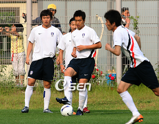오는 6월 2일 네덜란드와 평가전을 갖는 태극전사들이 31일 낮 서울 홍은동 그랜드 힐튼 호텔에 소집돼 상암 보조경기장에서 훈련에 들어갔다. 전날 경기를 치른 선수들은 간단한 러닝으로 회복 훈련을 실시했고 나머지 선수들은 강도 높은 훈련을 소화했다. 1년 여 만에 대표팀에 복귀한 이동국이 동료들과 패싱 훈련을 하고 있다./손용호 기자spjj@osen.co.kr