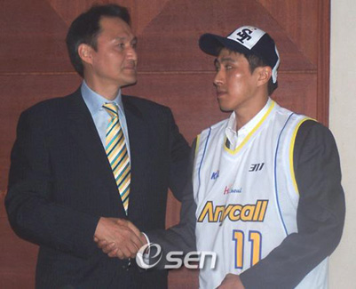 최근 프랜차이즈 스타 이상민(35)의 이적과 관련해 KCC 팬들이 집회를 갖고 자신들의 불만을 표출할 전망이다. 이상민의 삼성 이적에 대해 불만을 품은 서포터들은 지난 4일 KCC 구단 홈페이지 자유게시판에 오는 10일 오후 서울 서초동 KCC 본사 앞에서 'KCC 구단의 공식적인 사과 및 허재 감독과 최형길 단장의 사퇴 요구'와 관련된 집회를 가질 계획이라는 글을 올렸다. KCC가 삼성에서 FA로 나온 서장훈(33)을 영입하며 이상민을 3명의 보호선수에 넣지 않아 삼성이 보상선수로 데려간 데 따른 팬들의 반발인 것이다. 이들은 10여 년간 헌신한 프랜차이즈 스타에게 플레잉코치직을 제의하며 연봉을 깎아 계약한 뒤 FA 영입 후 보호선수로 지명하지 않아 그동안의 공을 감안하지 않고 '팽' 해버린 구단의 처사에 분노를 표출하고 있다. 특히 단순히 이상민의 트레이드 때문만이 아니라 최고의 활약을 보여준 간판 선수를 쉽게 버릴 수 있는 구단을 믿고 응원할 수 없다는 입장인 것으로 전해졌다. 한편 KCC 구단은 홈페이지에 이상민의 트레이드와 관련해 '책임을 회피하거나 변명하지 않겠다"는 의견을 올려 놓은 상태다. 한때 최고 인기구단으로 군림했던 KCC에 사상 초유의 항의 집회를 비롯해 다음 시즌 홈 경기 응원을 보이콧하겠다는 팬들의 목소리가 전해지게 될지 주목된다. 10bird@osen.co.kr 이상민이 삼성 입단식서 안준호 감독과 악수를 나누는 모습.