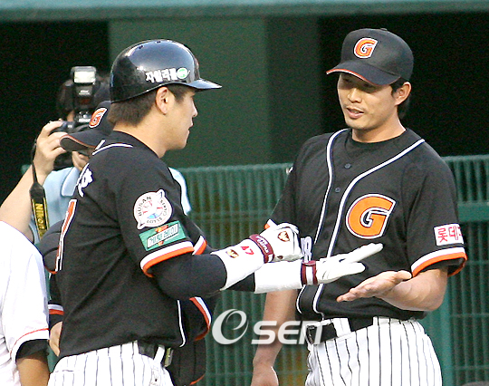 롯데 최향남이 그토록 갈망하던 시즌 첫 승을 따냈다. 마수걸이 승리를 위해 지난 4월 10일 사직 LG전 이후 10번의 도전을 했으나 타선 불발과 투구 난조로 승리없이 5패에 그쳤다. 그러나 최향남은 12일 잠실 두산전에서 완벽한 투구와 타선 지원의 환상적인 조화로 짜릿한 승리를 맛볼 수 있었다. 이날 최향남은 선발 투수로 마운드에 올라 8이닝 4피안타 1볼넷 4탈삼진 무실점으로 호투했다. 직구 최고 구속은 141km. 이날 롯데는 1위 두산을 5-0으로 꺾고 2연패에서 벗어났다. 최향남의 첫 승을 위해 타자들도 화끈한 타격 지원을 펼쳤다. 2회 선두 타자 박현승의 우전 안타로 만든 2사 3루에서 강민호가 1타점 좌전 안타를 터뜨리며 가볍게 선취점을 뽑았다. 롯데는 4회 2사 후 리오스의 볼넷과 김주찬의 중전 안타로 만든 2사 1,3루에서 강민호가 두산 선발 김승회의 143km 짜리 몸쪽 높은 직구를 그대로 받아쳐 시즌 5호 좌월 3점 홈런(비거리 115m)을 뽑아냈다. 이어 이원석이 우중간 안타로 출루한 뒤 톱타자 이승화의 좌중간 3루타로 한 점을 더 보태 5-0으로 달아났다. 이날 강민호는 최향남의 승리 도우미를 자처했다. 4회 3점 홈런을 비롯해 4타수 2안타 4타점으로 매서운 방망이를 뽐냈다. 지난 5월 6일 사직 삼성전에서 상대 선발 투수의 공에 맞아 손목 부상을 입었던 박현승은 이날 2루수 겸 5번 타자로 선발 출장, 4타수 2안타를 기록했다. 특히 2회 첫 타석에서 좌전 안타를 뽑아내 23경기 연속 안타 행진을 기록했다. 두산 선발 김승회는 4이닝 7피안타 1볼넷 2탈삼진 5실점으로 무너져 올 시즌 다섯 번째 고배를 들어야 했다. 김동주는 무릎 통증으로 이날 선발 라인업에서 빠져 53경기 연속 출장 행진에 마침표를 찍어야 했다. what@osen.co.kr 롯데의 4회초 2사 1,3루서 강민호가 좌월 스리런 홈런을 날리고 홈인, 선발투수 최향남으로부터 축하를 받고 있다./잠실=김영민 기자ajyoung@osen.co.kr