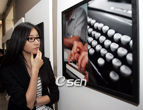 장애인의 꿈과 희망을 담은 사진전 '너! 나의시선?' 사진 전시회가 15일 용산 전쟁기념관에서 열렸다. 발달장애인의 시각으로 바라본 세상의 작품들과 시각장애인이 보고 싶어하는 세상을 브로딘과 엠플린 엔터테인먼트 소속 43명의 연기자들이 직접 듣고 그것을 사진으로 담아냈다. 윤지민이 자신의 작품을 감상하고 있다. /황세준 기자 storkjoon@osen.co.kr