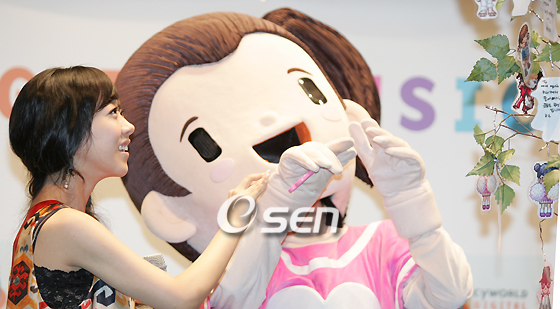 싸이월드 미니홈피 배경음악으로 1달간 가장 많은 판매를 올린 곡과, 두드러진 성장을 보인 신인에게 수상하는 '디지털 뮤직 어워드' 시상식이 19일 압구정 cgv에서 열렸다. 'Song Of The Month' 수상자는 5집 앨범을 들고 6년만에 컴백한 의 양파와 'Rookie Of The Month'에는 UCC스타인 의 1sagain이 선정됐다. 양파가 팬들과의 질의응답에서 나무 높이 걸려있는 팬들의 질문지를 따기 위해 싸이월드 미니미에게 도움을 요청하고 있다./황세준 기자 storkjoon@osen.co.kr