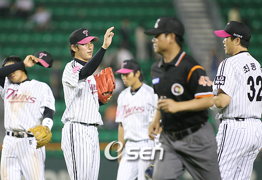 김재박 LG 트윈스 감독은 시즌 초반부터 걱정거리가 하나 있었다. 불안한 불펜진 때문에 한숨 쉬는 날이 많았다. 선발진은 나름대로 진영을 갖췄지만 불펜진이 영 믿음직스럽지 못하기 때문이었다. 그런 김 감독의 걱정이 점점 잦아들고 있다. 시즌 초반 '불지르는 불펜'으로 속을 썩이던 LG 불펜진이 갈수록 안정된 모습으로 팀 승리를 지키고 있다. 한마디로 '지키는 야구'가 돼가고 있는 요즘 LG다. 특급 마무리로 자리매김하고 있는 우완 사이드암 우규민(22)을 축으로 우완 김민기(30)-좌완 유택현(36)-우완 심수창(26)으로 이어지는 셋업맨 계열이 완성돼가고 있다. 이들 불펜진은 안정된 투구로 최근 LG의 5연승에 한 몫을 톡톡히 해냈다. 선발진의 호투와 타선의 경기 초반 집중타가 최근 5연승의 핵심이지만 불펜의 힘도 무시할 수 없다. 선발 투수가 경기 중반 힘이 떨어져 주춤할 때 투입된 불펜진은 최근 5경기서 1실점으로 제 몫을 다했다. 5연승을 하는 동안 최근 3경기는 2점차 승부였지만 불펜진의 호투로 승리를 지킬 수 있었다. 지난 17일 KIA전에서만 불펜진 중 심수창이 1실점했을 뿐 나머지 4경기서는 무실점으로 막아냈다. 또 17일 경기서만 선발 정재복이 6이닝을 던졌을 뿐 나머지 4경기서는 선발진이 6이닝도 채우지도 못한 채 내려간뒤 불펜진이 뒤를 지켜냈다. 우규민은 최근 3경기에 모두 등판, 4이닝 무실점으로 3연속 세이브에 성공했다. 덕분에 시즌 18세이브로 구원부문 단독 1위를 질주하고 있다. 또 우완 셋업맨 김민기는 최근 3경기 연속 홀드로 좌완 원포인트 릴리프 유택현과 함께 시즌 13홀드로 이 부문 공동 선두에 올랐다. 심수창은 8홀드. 홀드는 점수차가 세이브 요건때 등판해 리드를 지키면 주어진다. 최근 LG가 5연승으로 선두권을 위협하며 잘나가고 있는 이유는 투타 안정이 첫 번째 요인이다. 그중에서도 골치거리였던 불펜진이 안정된 모습을 찾아가고 있는 것도 주요 요인으로 분석되고 있다. 김재박 감독도 요즘 경기 후 인터뷰에서 "선발이 잘 던졌고 불펜이 잘 막아줬다"며 불펜진에 칭찬을 보내고 있다. 아직 삼성처럼 특급 불펜진의 위용을 갖추고 있지는 못하지만 갈수록 안정된 투구를 펼치고 있는 LG 불펜진이다. sun@osen.co.kr 지난 19일 잠실 경기서 세이브를 추가하며 4-2 승리를 지킨 LG 마무리 우규민이 1루수 최동수와 하이파이브를 하고 있다.