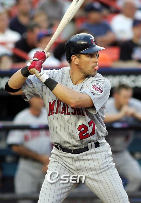 20일(한국시간) 뉴욕의 셰이 스타디움에서 벌어진 뉴욕 메츠와 미네소타 트윈스의 경기 미네소타의 2회초 무사 1루서 제프 서릴로가 풍선껌을 불며 타석에 서 있다. 서릴로는 중전 안타를 때렸고 메츠 중견수 카를로스 벨트란의 송구 실책으로 1루주자가 홈을 밟아 선취점을 올리면서 서릴로는 3루까지 가 대량 득점의 계기를 만들었다. / 셰이 스타디움(뉴욕)=주지영 특파원 jj0jj0@osen.co.kr