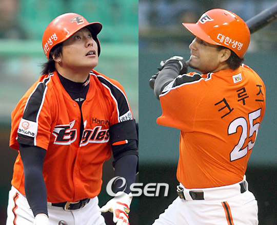 그야말로 '풍요 속의 빈곤'이다. 김인식 한화 감독은 올 시즌 최고의 거포 듀오로 평가받고 있는 김태균과 제이콥 크루즈를 보유했으나 그다지 만족감을 느끼지 못하고 있다. 도루를 제외한 공격 전 부문에서 5위 안에 랭크된 거포를 두 명이나 보유하면서도 못마땅하다면 타팀으로서는 이해하기 힘든 일이다. 지난 22일 대구 삼성전에 앞서 배팅케이지에서 타격 훈련 중인 선수들을 지켜 보고 있던 김인식 감독에게 김태균과 크루즈를 데리고 있어 든든하겠다고 묻자 "딴 애들이 못 치는데 좋긴..."이라며 대뜸 다른 타자들의 부진을 지적했다. 주전 선수 중 이들을 제외하고 김민재가 타율 2할7푼3리(194타수 53안타) 2홈런으로 제 몫을 하고 있을 뿐 나머지 주전급 선수들은 2할5푼 이하의 타율로 저조한 성적을 기록하고 있다. 크루즈-김태균과 함께 한화의 클린업 트리오를 이루고 있는 이범호는 올 시즌 타율 2할2푼9리(192타수 44안타) 12홈런 30타점 30득점으로 기대 이하의 성적을 기록하고 있다. 적어도 타율 2할8푼대는 해줘야 할 선수가 2할대 초반에 머무르고 있으니 감독으로서는 속이 타지 않을 수 없다. 또 이영우(타율 2할4푼3리, 51안타 19타점 22득점) 조원우(타율 2할2푼7리, 34안타 2홈런 13타점 21득점)도 명성에 못 미치는 성적표를 들고 있다. 지난 시즌 한국시리즈 정상을 눈앞에 두고 삼성에 우승컵을 내줘야 했던 한화가 올 시즌 우승의 한을 풀기 위해서는 김태균과 크루즈를 제외한 나머지 타자들의 분발이 절실하다. 한화의 '다이나마이트 타선'이 언제쯤 제 모습을 찾아 김 감독을 흡족하게 할지 주목된다. what@osen.co.kr 김태균-크루즈.