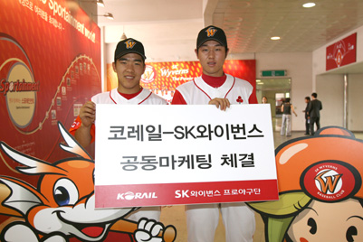 SK 와이번스의 원정지 이동 교통편으로 구단 버스 외에 KTX가 추가됐다. SK 구단은 '오는 27일 문학 롯데전에 앞서 코레일과 공동 마케팅 협약을 체결할 예정이다. 이번 공동 마케팅은 시속 300km의 빠른 속도를 자랑하는 KTX를 보유하고 있는 코레일과 올 시즌 빠른 기동력을 바탕으로 프로야구 선두를 달리고 있는 SK가 상호간에 보유하고 있는 장점을 공유함으로써 고객에게 더 나은 행복을 제공하는 데 그 의의를 두고 있다'라고 배경을 밝혔다. 이에 따라 SK 선수단은 지방 원정경기 이동시 KTX를 이용할 경우 운임의 60%를 할인받는 혜택을 누리게 된다. 대신 SK는 당일 철도 승차권을 소지하고 있는 관중에게 입장료의 50%를 할인해 준다. 또 선수단이 연 2회 철도 사인회를 가질 예정이며 구장 내 전광판을 통해 KTX 홍보 동영상을 방영하기로 했다 한편, 27일 시구는 김학태 코레일 홍보실장이 실시할 예정이며, SK 선수단은 7월 3일 대구 삼성전부터 KTX를 타고 이동할 예정이다. sgoi@osen.co.kr SK 와이번스 제공.