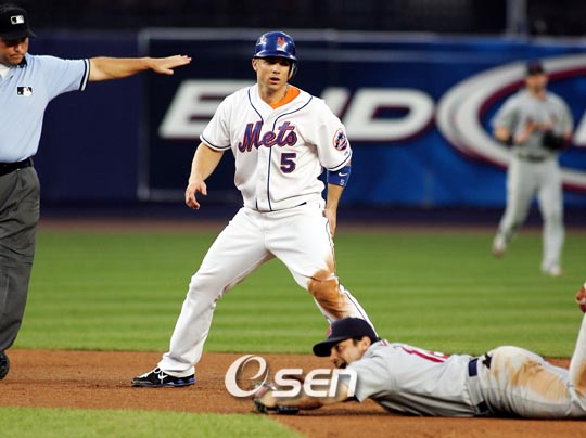 26일(한국시간) 뉴욕의 셰이 스타디움에서 벌어진 뉴욕 메츠와 세인트루이스 카디널스의 경기 메츠의 4회말 1사 1루서 카를로스 델가도의 땅볼 타구를 잡은 세인트루이스 1루수 앨버트 푸홀스가 병살을 노리고 던진 송구가 베이스에서 벗어나자 유격수 애런 마일스가 몸을 던지며 1루주자 데이빗 라이트의 태그를 시도한 뒤 심판을 쳐다보고 있다. 모두 살아 1사 1, 2루가 됐다./셰이스타디움(뉴욕)=주지영 특파원 jj0jj0@osen.co.kr