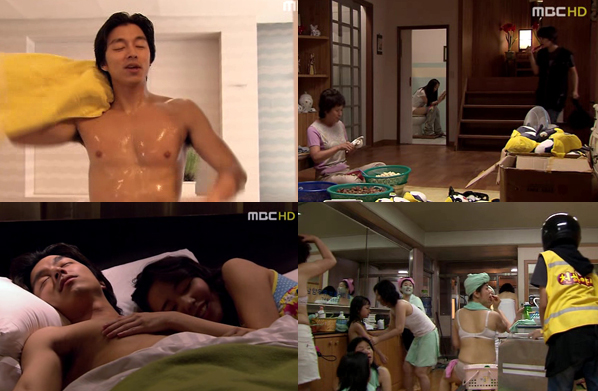 시청자 관심 끌기에 노출만큼 좋은 미끼는 없다? 2일 첫 방영된 MBC 월화드라마 '커피프린스 1호점'이 샤워실, 목욕탕, 화장실, 침대로 이어지며 확실한 노출신들을 선보여 화제다. 새 드라마가 시작될 때면 '주인공 OO의 우유처럼 뽀얀 속살이 드러났다'는 홍보문구를 심심찮게 목격할 수 있다. 드라마 '황진이'가 하지원의 폭포수 목욕 장면을 요란하게 떠들었던 것처럼 대개는 여배우를 타겟으로 한다. 그러나 '커피프린스 1호점'은 공유의 탄탄한 근육질 상반신을 자랑거리로 삼았다. '공유의 노출신이 필요이상으로 잦았다'는 시청자 의견들이 나왔을 정도다. 첫 방송의 첫 장면부터가 야식집 배달원으로 분한 윤은혜의 여탕 급습으로 포문을 열었다. 남자 배달원으로 오해한 목욕탕 여자 손님들이 화들짝 놀라서 이리 뛰고 저리 뛰는 신이다. 드라마의 키 포인트랄수 있는 윤은혜의 보이시한 매력을 강조하기에 딱 좋았던 도입부다. 다시 타올 한장으로 하반신만을 가린 공유의 집에 배달가는 윤은혜. 역시 그녀를 남자로 오해한 공유는 아무런 거리낌이 없이 반나체를 공개한다. 이에 놀란 윤은혜가 "오늘 올 누드(All Nude)네, 올 누드"라고 자기 머리를 쥐어박는 모습까지. 앞으로 남장여자 윤은혜와 부잣집 매력남 공유의 사랑이 어떤 식으로 진행될 지를 보여주는 대목으로 적당했다. 여동생에게 따라붙은 찐드기 남자친구를 자장면 대결로 가볍게 물리치고 집에 돌아온 윤은혜. 엄마는 마루에서 밤을 까고 동생은 화장실 문을 활짝 연 채 볼 일을 보는 중이다. 모녀 셋이 오소도손 격의없이 살아가는 가족애를 표현하려는 의도였을까. 1회 종반부. 자신을 덮치려는 후배 여자에게 호텔로 납치당하다시피 한 공유, 상반신을 드러낸 채로 침대에서 쿨쿨 잠을 자고 후배는 천연덕스럽게 그의 가슴을 만진다. 이로써 이 드라마의 노출신은 목욕탕-욕실-화장실-침실로 완벽한 하모니를 자랑했다. 윤은혜의 남장 연기 등으로 기대를 모았던 '커피프린스 1호점'은 첫 회에서 빠른 전개와 독특한 소재 등으로 괜찮은 반응을 얻었다. 아직 출연진들 사이의 엇박자로 다소 엉성한 느낌도 들지만 시간이 해결해줄 수 있는 문제다. 어찌됐건 지나침은 부족함만 못하다는 게 옛말. 노출신을 극의 양념으로 삼는 건 분명 긍정적인 효과도 있지만 조미료가 너무 많이 들어간 음식은 곧 느끼해진다는 게 일각의 지적이다. mcgwire@osen.co.kr mbc 방송화면 캡처