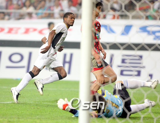지난 1998년 프랑스 월드컵에서 한국 대표팀은 E조 2차전에서 네덜란드에 5-0 패배를 당하며 당시 차범근 감독이 중도하차 하는 등 아쉬움을 남겼다. 이 당시 양 팀의 수문장이 다시 만났다. 20일 서울 월드컵경기장에서 열린 맨체스터 유나이티드의 아시아투어 2차전에서 9년 전 양 팀의 골키퍼였던 김병지와 에드윈 반더사르가 다시 만나 한판 대결을 펼쳤다. 당시 김병지는 네덜란드와의 경기서 선방을 거듭하는 모습을 보였다. 그렇지만 당시 그는 팀 전력의 차이를 극복하지 못했고 5골을 내주며 0-5의 대패를 당하고 말았다. 최근 김병지는 맨체스터 유나이티드와 경기를 앞두고 "그동안 한국 축구는 비약적인 발전을 계속해 왔다. 2002년 한일월드컵에서 한국을 알렸다면 이제는 FC 서울이라는 팀을 세계에 알릴 것"이라며 강한 자신감을 내비쳤다. 그러나 이날 경기서 김병지의 꿈은 수포로 돌아가고 말았다. 젊은 선수들을 대거 기용한 FC 서울은 투톱으로 나선 크리스티아누 호나우두와 웨인 루니를 제대로 막아내지 못하며 4골을 내주고 말았다. 물론 골키퍼 김병지의 역할 보다는 수비진의 역할이 실점을 부른 요인이었다. 서울의 젊은 선수들은 프리미어리그 우승팀 맨체스터 유나이티드를 만나 기가 죽은 모습을 보이며 번번히 뚫리는 모습을 보이고 말았다. 결국 김병지는 이날 경기서 전후반 통틀어 4실점을 내주며 9년 만에 만난 반더사르에게 설욕전을 펼치지 못한채 후반 44분 교체됐다. 하지만 그는 그라운드를 떠날때까지 FC 서울의 젊은 수비진을 이끌며 최선을 다해 경기를 마쳐 후반기 K리그 전망을 밝게했다. 10bird@osen.co.kr 김병지가 에브라에게 4번째 골을 허용하는 모습.