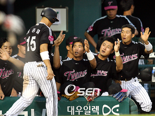 LG 트윈스가 '잠실 앙숙' 두산 3연전을 또 우세로 끝냈다. 전날은 새 용병 옥스프링을 앞세운 투수전의 승리였다면 22일은 20안타를 쏟아부은 타격의 힘이 돋보였다. LG는 22일 두산과의 잠실 원정경기에서 20안타-5볼넷을 뽑아내며 총 9명의 투수가 나온 두산 마운드를 붕괴시켰다. 두산 역시 12안타-2볼넷으로 응수했으나 불펜 싸움을 LG에 장악당하며 6-12로 대패했다. 시즌 팀 최다안타 기록을 세운 LG는 단독 4위(39승 37패 4무)를 지켰다. 또 시즌 두산전 성적도 6승 1무 7패까지 맞춰놨다. 선발인 두산 정재훈(1이닝 6피안타 4실점)과 LG 최원호(1⅓이닝 6피안타 5실점)가 조기 강판당하며 양 팀은 타격전을 예고했다. 이미 5회초까지 양 팀 나란히 두 자릿수 안타(10개씩)를 넘어섰다. LG는 1회초 시작하자마자 3연속 안타로 선제점을 뽑았으나 무사 2,3루 기회를 더이상 살리지 못했다. 이에 반격에 나선 두산은 1회말 5안타를 집중시켜 4점을 얻어냈다. 그러나 LG는 다시 2회초 3연속 안타와 내야 땅볼 2개로 3득점, 4-4 동점을 만들었다. 그러자 두산은 2회말 채상병의 좌월 1점홈런과 오재원의 적시타로 다시 2점을 앞서나갔다. 그러나 두산 불펜진은 LG 타선을 막아내지 못했다. 금민철은 4회 발데스에게 중월 2루타로 1실점했고, 김상현이 5회초 투아웃 후, 이종렬의 역전 적시 2타점 안타 포함해 3연속 안타를 맞는 바람에 6-8로 뒤집혔다. LG는 8회 터진 조인성의 1타점 적시타로 쐐기를 박았다. 9회에는 발데스가 김명제를 상대로 우월 2점포를 터뜨렸다. 두산은 선발 정재훈을 포함해 금민철-김상현-원용묵-김승회-정재훈(40번)-이승학-김명제-노경은을 투입했으나 내놓는 투수마다 족족 터지는 데는 재간이 없었다. 반면 LG 불펜진은 최원호-김재현 이후 3번째로 등판한 김민기가 4⅓이닝을 무실점으로 막아내 승리투수가 됐다. LG는 7회 이후 류택현-정재복을 올려 9-6 승리를 지켰다. LG, 두산 양 팀은 올 시즌 최다인 총 32안타(LG 20개-두산 12개)를 기록했고, 특히 LG는 선발 전원안타를 기록했다. LG 1번타자 이대형은 5타수 3안타 1볼넷 3도루 4득점의 활약을 펼쳤다. 두산 역시 첫 타석만 마치고 왼 손가락 중지가 삐어서 교체된 4번타자 김동주를 제외하고 선발 전원 안타를 기록했다. 또한 양 팀은 올 시즌 9이닝 최장 시간 경기 기록을 세웠다. sgoi@osen.co.kr 5회초 2사 2루서 7-6으로 재역전하는 2타점 안타를 치고 나간 이종렬이 최동수의 안타 때 홈을 밟고 후배들의 환영을 받고 있다./잠실=손용호 기자spjj@osen.co.kr