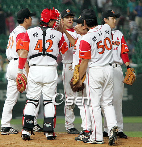 워낙 벌어놓은 것이 많기에 티가 안날 뿐이지 현재 SK의 전력은 정상이 아니다. SK와 붙는 팀들만 힘겨워하는 것이 아니라 SK 자체도 버거운 처지다. SK는 2일 KIA전을 마치면 삼성-LG-한화와 9연전을 남겨두고 있는데 여기가 1위 수성의 최대 고비로 보여진다. 그러나 SK는 이 9연전을 에이스 레이번 없이 치를 가능성이 적지 않다. 레이번은 지난달 31일 KIA전 패전 직후 2군행을 통보받았다. 다음날 만난 김성근 SK 감독은 말을 아꼈으나 "자기 공을 못 던진다. 145km짜리 직구를 가지고 있다면 던져야 되는 것 아닌가"라고 지적했다. 레이번의 구속 문제가 아니라 정신 상태에 대해 화가 난 듯 비쳤다. SK는 지난 1일 KIA전 선발이었던 송은범 역시 2회를 못 버티고 강판됐다. 번트 수비 에러가 나왔지만 1⅔이닝 동안 41구나 던지고, 이 중 스트라이크가 16개에 불과한 것은 심각하다. 등판 간격을 여유있게 주는데도 스태미너 문제를 또 노출하고 있는 셈이다. 나머지 선발 김광현-로마노-채병룡도 전폭적 신뢰를 받긴 어렵다. 불펜도 탈이 났다. 정대현은 지난달 28일 한화전과 1일 KIA전에서 연속으로 2이닝 세이브를 했다. 그에 앞서 던져줘야 할 조웅천의 몸이 정상이 아닌 때문이다. 김성근 감독은 최근 들어 평소보다 선발의 교체 타이밍을 몇 템포 늦추는 경향이 있다. 선발을 믿어서가 아니라 불펜에 대안이 없어서다. 이밖에 야수진도 포수 박경완이 어지럼증을 호소하는 등 혹서기 들어 이상 징후를 드러내고 있다. 김 감독 취임 이후 단 한 번도 페이스를 떨어뜨리지 않다시피한 SK다. 그럼에도 SK가 버티는 이유는 크게 두 가지, 타선 건재와 쭉 이겨온 관성 덕분이다. 1일 KIA전만 봐도 18안타로 5점차 열세를 뒤집었다. 또 선수들이 하도 많이 이기다보니 이기는 요령과 근성을 터득한 양상이다. 1일까지 SK는 6.5경기차 1위 독주다. 이 시점에서 SK가 체력 안배에 신경쓸지, 1위 굳히기에 박차를 가할지 여부에 따라 포스트시즌도 영향을 받을 전망이다. sgoi@osen.co.kr