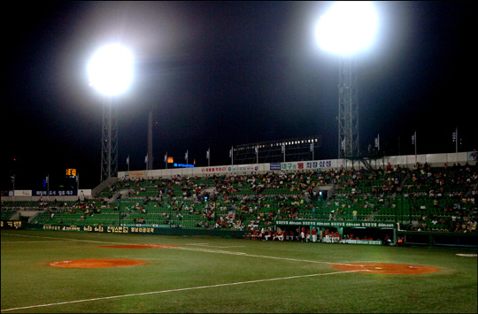 3일 대구구장에서 열린 SK-삼성전이 조명탑 고장으로 인해 19분간 중단되는 소동이 벌어졌다. 1-1로 맞선 SK의 5회초 공격 도중 중앙 조명탑이 꺼지고 1,3루 조명탑의 라이트 일부가 작동되지 않은 것. 조명탑 고장으로 경기 진행이 어려워지자 추평호 주심은 오후 7시 38분 경기 중단을 선언했고 양팀 선수들은 모두 그라운드에서 빠져 나왔다. 경기는 19분 만인 오후 7시 57분에 재개됐다. 이날 조명탑 고장의 원인은 낙뢰로 인해 조명탑 전력 공급 시설이 일시 마비된 것으로 밝혀졌다. 삼성 관계자는 "갑작스러운 낙뢰로 인해 조명탑 전력 공급 시설이 마비됐다. 재가동하는데 시간이 걸린 것"이라고 말했다. 한편 이날 경기는 조명탑 고장으로 인해 19분간 경기가 지연돼 클리닝 타임없이 진행됐다. what@osen.co.kr 3일 대구구장에서 열린 SK-삼성전에서 5회 조명탑 고장으로 인해 경기가 중단됐다. / 삼성 라이온즈 제공.