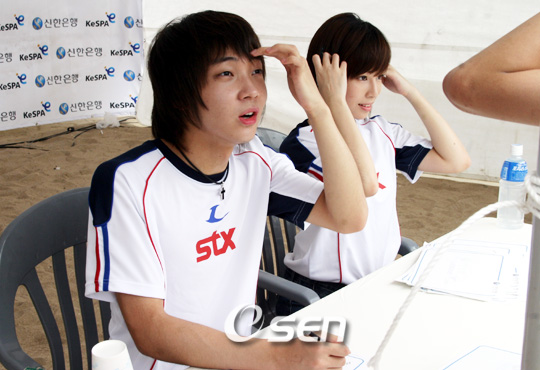 4일 오후 6시부터 부산 광안리 특설무대에서 '신한은행 프로리그 2007' 전기리그 결승전이 벌어진다. 결승전에 앞서 최고 인기 프로게이머 17명이 참여하는 최대 규모의 사인회가 열렸다. '레드 스나이퍼' 진영수(19, STX)가 사인을 요청하는 팬에게 다른 메시지를 적어줄 게 없냐고 물어보고 있다. /부산=고용준 기자 scrapper@osen.co.kr