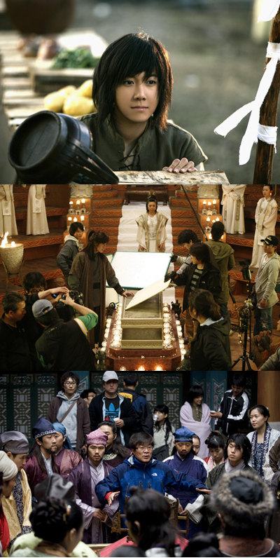 배용준 문소리 주연의 ‘태왕사신기’(송지나 박경수 작가, 김종학 윤상호 감독)의 베일이 벗겨졌다. 9월 10일 스페셜 방송을 시작으로 본격적인 방영에 들어가게 될 ‘태왕사신기’는 그 동안 제작 과정에서부터 촬영현장 스틸 등 드라마 전반에 대한 자료가 드러나지 않았다. 이번에 촬영현장 스틸을 공개함으로써 본격적인 드라마 띄우기에 나선 셈이다. 이번에 공개된 스틸은 ‘태왕사신기’의 제주 국내성 세트 내부를 확인할 수 있다. 또한 배용준 문소리 이지아의 연기장면과 김종학 감독의 연출 장면을 볼 수 있다. ‘태왕사신기’는 현재 제주 국내성 세트를 거점으로 완도 나주 등 제주와 내륙을 오가며 촬영에 매진하고 있다. 24부작으로 신화시대에서 고구려로 이어지는 역사를 다룬 ‘태왕사신기’는 광개토대왕을 중심으로 한 고구려사를 그려낸다. 신화와 역사가 결합된 판타지 서사 드라마. ‘태왕사신기’는 MBC를 통해 9월 10일 첫방송을 확정 지었다. 9월 10일 드라마 소개와 제작과정, 배우 인터뷰 등을 담은’태왕신기 스페셜’을 방송한 뒤 11일-13일에 1-3부를 방송하고, 19일부터 매주 수, 목요일 밤 9시 55분 에 방송될 예정이다. crystal@osen.co.kr 티에스지프로덕션문화산업전문회사 제공