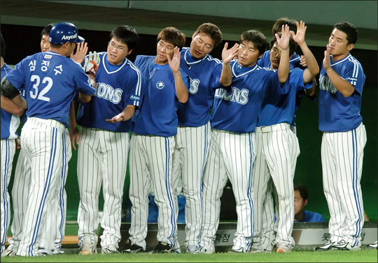 '헤라클레스' 심정수가 연타석 아치를 그리며 팀 승리를 견인했다. 심정수는 8일 사직구장에서 열린 롯데와의 원정 경기에 4번 지명 타자로 선발 출장, 1회와 4회 홈런포를 가동하며 팀의 5-3 승리를 이끌었다. 반면 롯데는 이날 패배로 지난 4일 광주 KIA전 이후 3연패의 늪에 빠지게 됐다. 선발 송승준은 복귀 후 첫 고배를 마셔야 했다. 1회 1사 1,2루 득점 찬스에서 첫 타석에 들어선 심정수는 상대 선발 송승준의 133km 짜리 슬라이더를 공략, 시즌 22호 좌월 3점 홈런(비거리 120m)을 작렬했다. 심정수는 3-1로 앞선 4회초 두 번째 타석에서 선두 타자로 나서 송승준의 초구를 강타, 120m 짜리 좌월 솔로 아치를 쏘아 올렸다. 시즌 23호 홈런. 심정수는 이날 홈런 2방을 터트리며 클리프 브룸바(현대)와 함께 이 부문 공동 선두에 올랐다. 삼성은 4-3으로 앞선 6회초 공격에서 김한수의 1타점 적시타로 한 점을 보태 승리를 결정지었다. 선발 제이미 브라운은 5이닝 10피안타(1피홈런) 3볼넷 2탈삼진 3실점으로 시즌 9승과 더불어 3연승을 내달렸다. 마무리 오승환은 1⅓이닝 1피안타 1볼넷 2탈삼진 무실점으로 시즌 28번째 세이브를 따냈다. 공격에서는 심정수가 홈런 2방을 포함해 4타수 2안타 4타점 2득점으로 팀 타선을 이끌었다. 롯데는 0-3으로 뒤진 2회 2사 1,2루에서 정수근의 좌전 안타로 한 점을 만회한 뒤 4회 강민호의 우월 솔로 홈런(비거리 100m)과 이인구의 1타점 적시타로 추격했으나 전세를 뒤집기엔 역부족이었다. 선발 송승준은 5이닝 6피안타(2피홈런) 4볼넷 4탈삼진 5실점으로 난조를 보이며 국내 무대 복귀 후 첫 패전의 멍에를 썼다. what@osen.co.kr 심정수가 4회 좌월 솔로 홈런을 날린 뒤 동료들의 축하 인사를 받고 있다. / 삼성 라이온즈 제공.