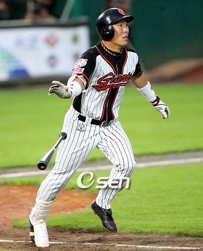"뭐... 실력이라기 보다는 운빨이죠". 최근 맹타를 과시하고 있는 정수근은 타격감이 좋은 비결에 대해 '운빨'이라고 대답했다. 대부분의 선수들에게 최근 타격감이 좋은 비결을 물어보면 '타격 밸런스가 좋아졌다', '특타 훈련을 통해 문제점을 개선했다'는 식의 대답이 대부분인 것에 반해 엉뚱하지 않을 수 없었다. 9일 현재 정수근은 타율 2할8푼7리(237타수 68안타) 4홈런 25타점 35득점 10도루를 마크하며 롯데 타선의 돌격대장 역할을 톡톡히 해내고 있다. 특히 서머리그 타격 5위(타율 3할7푼9리)로 쾌조의 타격감을 자랑하고 있다. 이날 경기에서 좌익수 겸 2번 타자로 선발 출장한 정수근은 4-1로 앞선 4회 1사 1,3루에서 2타점 적시타를 터트리며 팀 승리에 한 몫 했다. 고무적인 것은 정수근이 플래툰 시스템에서 벗어났다는 것. 그동안 정수근은 상대 선발이 좌완 투수일 경우, 9번 타순에 배치되거나 선발 라인업에서 제외되는 경우가 많았으나 이날 2번 타자로 선발 출장했다. 그만큼 강병철 감독의 신임을 얻었다고 볼 수 있다. 한 두 번 잘 하면 '운빨'이라고 볼 수 있으나 상승세가 지속된다면 '운빨' 보다는 실력이라고 보는 것이 적절할 것이다. 최근 맹타 비결을 '운빨'이라고 표현한 정수근의 겸손한 대답이라고 받아들여야 할지도 모른다. what@osen.co.kr