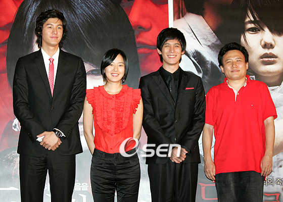 영화 '두사람이다' 언론시사 및 기자 간담회가 10일 오후 서울 삼성동 코엑스 메가박스에서 열렸다. 사람관계의 최소단위인 두사람 사이에서 발생하는 미움, 시기 ,질투, 증오를 통해 살인까지 행할 수 있는 사람의 심리와 공포를 표현한 영화이다. 이기우 윤진서 박기웅 오기환감독(왼쪽부터)이 포토타임을 갖고 있다. /황세준 기자 storkjoon@osen.co.kr