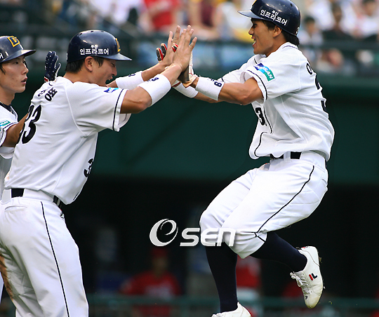 두산 에이스 다니엘 리오스가 올 시즌 처음으로 15승 고지를 밟았다. 에이스 윤석민이 무너진 KIA는 시즌 60패를 당했다. 두산은 15일 KIA와의 잠실경기에서 선발투수 리오스의 호투와 KIA 에이스 윤석민을 상대로 타선의 강력한 집중력을 발휘, 5-1 강우콜드 승리를 거두었다. 두산은 시즌 52승2무44패를 기록, 2위를 지켰고 KIA는 시즌 39승1무 60패를 기록했다. 초반은 박진감 높은 에이스 맞대결이 펼쳐졌다. 4회까지 양팀이 뽑은 점수는 두산이 3회 얻은 1점. 양팀 투수들이 적극적인 승부를 펼쳐 팽팽한 긴장감을 불어넣었다. 승부의 추는 5회말 두산의 리오스로 급격하게 기울었다. 두산 타선은 리오스가 5회까지 무실점으로 KIA타선을 요리하자 1-0으로 앞선 5회말 공격에서 폭발을 일으켰다. 두산은 1사후 이대수의 중전안타와 채상병의 좌전안타로 1,2루 찬스를 잡았다. 민병헌이 삼진으로 물러나 찬스를 날리는 듯 했으나 이종욱이 중전 적시타로 한 점을 뽑았다. 불씨가 되살아나자 김현수의 2타점짜리 우익선상 2루타와 고영민의 좌중간 2루타까지 터져나와 순식간에 5-0으로 달아났다. KIA는 7회초 김종국의 시즌 6호 좌월홈런으로 영패를 모면했다. 결국 경기는 7회말 두산 공격 도중 내린 폭우로 중단됐고 30분이 경과해도 그치지 않아 강우콜드게임이 됐다. 리오스는 7이닝 3피안타 무사사구 1실점으로 완투승을 거뒀다. 지난 7월 31일 잠실 한화전 완봉승 이후 3경기, 15일 만에 값진 승리를 따내고 올 시즌 첫 15승 투수가 됐다. KIA 윤석민은 5이닝 8피안타(1볼넷) 5실점으로 시즌 15패(6승)를 당했다. 특히 올해 두산전 3전 전승으로 강했지만 이날은 제구력이 흐트러지면서 첫 패를 기록했다. sunny@osen.co.kr 두산의 5회말 2사 1,3루서 김현수의 우익수 오른쪽 2루타 때 들어와 4-0을 만든 1루 주자 이종욱이 홈에서 펄쩍 뛰며 좋아하고 있다./잠실=손용호 기자spjj@osen.co.kr