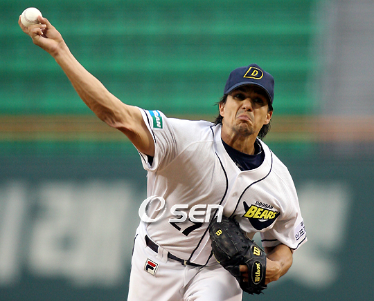 "20승은 못할 것 같다". 두산의 든든한 에이스 다니엘 리오스(35)가 시즌 15승을 달성했다. 15일 잠실 두산전에서 7이닝 3피안타 1실점으로 호투했고 7회말 갑자기 내린 폭우로 강우콜드게임 완투승이 됐다. KIA 시절인 2004년 17승, 두산으로 트레이드 된 2005년 15승에 이어 3번째 15승 고지를 밟았다. 시즌 6번째 완투였고 그 가운데 5승을 거두면서 4번은 완봉승이었다. 비 덕택에 이날 7이닝 완투승의 행운까지 거머쥐었다. 이날 리오스의 투구수는 63개. 이닝당 10개가 채 되지 않을 정도로 볼이 좋았다. 설령 경기가 재개됐더라도 9이닝 완투가 가능했다. 앞선 2경기는 에이스 답지 않게 다소 부진했다. 지난 8월 5일 잠실 LG전 7이닝 6실점, 10일 잠실 롯데전 2이닝 5실점(1자책)으로 어두운 그림자를 드리웠다. 그러나 이날 쾌투로 주변의 우려를 말끔히 씻어냈다. 경기후 리오스는 지난 2경기의 부진에 대해 "이유는 있지만 밝힐 수는 없다"며 "결과가 안좋았을 뿐 컨디션은 좋았고 오늘도 좋았다"고 말했다. 한국에서 자신의 3번째 15승 소감으로는 "시즌이 끝난 후 되돌아보면 어땠는지 이야기할 수 있다. 20홈런을 쳤다고 해서 끝나지 않은 것처럼 기록은 계속된다. 이번 15승은 의미가 없다"고 여전히 승리에 목마르다는 말을 했다. 외국인 첫 20승은 부정적으로 내다봤다. 그는 "20승 보다는 1위 SK를 꺾고 한국시리즈에 직행하는 게 우선 목표이다. 앞으로 등판 기회가 적기 때문에 20승은 힘들 것 같다. 혹시 19승하면 그때 20승 하겠다고 말하겠다"며 활짝 웃었다. sunny@osen.co.kr