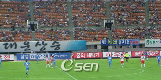 대구 FC가 8경기 무승의 고리를 끊고 승리를 올렸다. 대구는 15일 대구 시민 운동장에서 열린 제주 유나이티드와의 K리그 16라운드 경기에서 루이지뉴와 황선필, 이근호의 골에 힘입어 3-0 으로 완승했다. ▲ 효율적인 축구로 나선 대구 대구의 축구는 효율적이었다. 대구는 선수비 후역습으로 나섰다. 이 전술은 장신 스트라이커 황연석과 발이 빠른 이근호가 있기에 상당한 효과가 있었다. 원톱에 선 황연석은 헤딩으로 좌우측 공격수들에게 찬스를 만들어주었다. 허리 뒤쪽에서 날아온 롱패스는 공간으로 향하는 이근호에게 향했다. 반면 제주는 허리에서부터 잔패스로 경기를 풀어나갔지만 대구의 수비에 막히는 모습이었다. 이런 경기 흐름에서 대구가 선제골을 뽑아낸 것은 경기에 큰 영향을 미쳤다. 대구는 전반 29분 황연석이 아크 서클 앞에서 절묘한 패스를 했고 이것을 잡은 루이지뉴가 골을 뽑아낸 것. 선제골을 뽑은 대구는 한층 여유롭게 경기를 펼쳐나갔다. 후반 들어 대구는 경기를 압도했다. 허리에서 강한 압박을 걸어 공을 뺏어낸 후 날카로운 역습을 펼쳐나간 것. 대구의 역습은 빛을 발했고 후반 초반 추가골을 뽑아냈다. 후반 9분 진경선이 오른쪽에서 올린 크로스를 황선필이 페널티 에어리어 안에서 슬라이딩하며 골로 연결한 것이었다. 2-0이 되자 제주는 급해졌다. 정해성 감독은 선수 교체를 단행하며 대구를 공략했지만 효과는 별로 없었다. 이미 대구가 수비를 두텁게 한 상황에서 그들을 뚫어내기가 쉽지 않았기 때문이다. 오히려 후반 40분 이근호에게 골을 허용하며 추격 의지를 잃고 말았다. 이 골은 이근호의 K리그 7호, 시즌 9호골로 토종 공격수의 자존심을 세우던 순간이었다. 승점 3점을 추가한 대구는 승점 16점을 확보했다. bbadagun@osen.co.kr