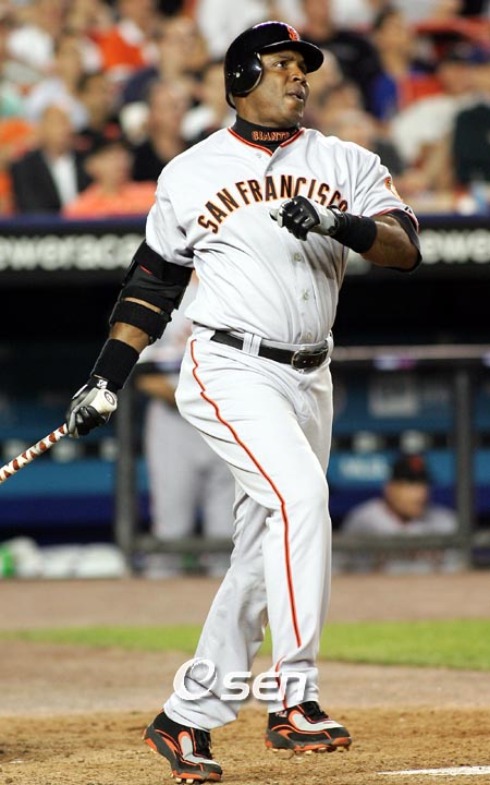 메이저리그 홈런왕 배리 본즈(43, 샌프란시스코 외야수)가 통산 760호 홈런을 터트리며 개인 통산 신기록 행진을 이어 갔다. 본즈는 19일(이하 한국시간) 플로리다주 마이애미의 돌핀스타디움에서 열린 플로리다 원정경기에서 2-3으로 뒤진 5회초 공격 때 2사 1루에서 상대 선발 릭 반덴허크를 상대로 중월 투런 아치(비거리 143m)를 쏘아 올렸다. 시즌 26호이자 개인 통산 760호 홈런. 본즈는 이날 4타수 1안타 2타점 1득점을 기록했다. 샌프란시스코는 본즈의 역전 2점 홈런에 힘입어 4-3으로 승리를 거뒀다. 선발 맷 케인은 7이닝 6피안타(2피홈런) 1볼넷 7탈삼진 3실점으로 시즌 5승(13패)을 거뒀다. 플로리다는 1회말 공격에서 핸 라미레스의 좌월 솔로포(비거리 119m)와 마이크 제이콥스의 1타점 적시타로 2-0으로 앞서 나간 뒤 2-2로 맞선 4회말 공격 때 선두 타자로 나선 제이콥스가 144m 짜리 제이콥스의 중월 솔로 아치로 3-2로 역전에 성공했으나 5회 2점을 허용하는 바람에 아쉽게 패했다. 선발 반덴허크는 5⅔이닝 7피안타(1피홈런) 3볼넷 5탈삼진 4실점으로 패전 투수가 됐다. what@osen.co.kr
