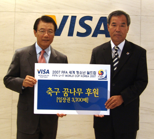 '국제 대회에 꿈나무를 초청한다!'. 17세 이하 월드컵 조직위원회(위원장 정동채)는 비자카드(대표이사 김영종)로부터 이번 대회 입장권 3700장을 전달받고 , 이를 각 지역 유소년들에게 제공할 예정이다. 20일 대회 조직위원회는 보도자료를 통해 비자카드의 김영종 대표이사가 서울 소공동 비자카드 본사에서 이상호 대회 조직위 경기운영국장에게 입장권을 전달해 서울 울산 제주 수원 고양 천안 창원 광양 등 이번 대회가 개최되는 도시에 위치한 초중고 축구팀 및 축구 클럽 선수들을 초청한다고 밝혔다. 이번 티켓제공은 지리적 제한으로 인해 그간 국제 대회를 관전할 기회가 적었던 국내 축구 꿈나무들에게 매우 소중한 경험이 될 전망이다. 비자카드 김영종 대표이사(왼쪽)와 이상호 조직위 경기운영국장=대한축구협회 제공. yoshike3@osen.co.kr