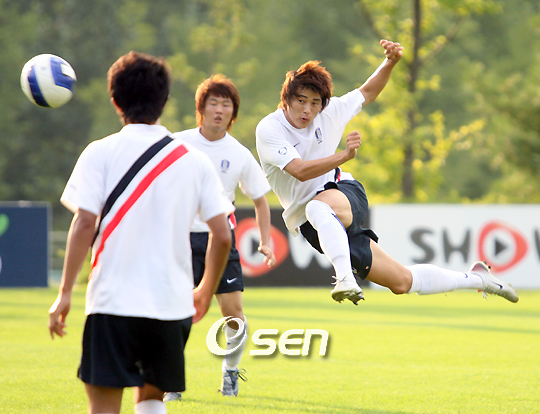 '프리킥? 백지훈-김승용-김진규-이상호에게 맡겨!'. 오는 22일 오후 서울 상암 월드컵경기장에서 열릴 우즈베키스탄과의 베이징올림픽 아시아지역 최종예선 첫 경기에서 프리킥을 전담할 멤버들의 윤곽이 가려졌다. 주인공은 모두 4명. 백지훈(21, 수원) 김승용(21, 광주) 김진규(21, FC서울) 이상호(19, 울산)다. 이들 4인방은 20일 오후 파주NFC에서 약 한 시간 가량 진행된 올림픽대표팀 훈련에서 박성화 감독의 지시를 받고, 프리킥과 코너킥 훈련을 집중적으로 연습했다. 물론 프리킥과 코너킥 훈련은 멤버들이 조금씩 달라졌다. 오른쪽 코너에서 볼을 띄울 때는 백지훈이 맡았고, 반대편은 김승용이 차 올렸다. 이때는 투톱으로 나설 것이 유력해 보이는 한동원-신영록과 함께 제공권이 뛰어난 김진규 강민수 두 센터백과 이근호가 문전 쇄도하는 연습을 실시했다. 그러나 페널티박스 외곽이 아닌 정면에서 골문으로 직접 프리킥을 찰 때는 김진규와 이상호가 가세해 번갈아가며 슈팅 감각을 조율했다. 일단 세트피스 상황에 대비한 개괄적인 윤곽이 드러난 셈이다. 수비 지향적이라는 지적을 받아왔던 박성화 감독으로서는 득점이 터지지 않고선 승리가 어려운 만큼 '세트피스'를 주 득점 전략 중 하나로 삼을 것임을 내비친 것. 과연 예정된 시간을 넘겨서까지 진행된 훈련의 효과가 드러날 수 있을지, 우즈벡전에 관심이 모아진다. yoshike3@osen.co.kr 백지훈이 훈련 도중 발리슛을 날리는 장면.