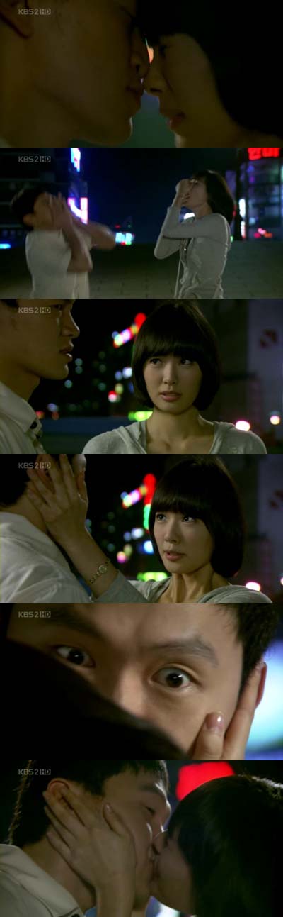 명랑학원물 KBS 2TV 월화드라마 ‘아이엠 샘’(이진매 극본, 김정규 연출, 팬 엔터테인먼트 제작)도 요즘 방송가 로맨스 대열에 합류했다. 20일 방송된 ‘아이엠 샘’에서 장이산(양동근 분)과 신소이(손태영 분)가 박치기 키스를 선보였다. 그 동안은 이산과 소이 두 사람 모두 서로를 좋아했지만 소심한 성격 탓에 이렇다 할 진전을 보이지 못하고 있었다. 5회에서 이산이 소이의 집 앞에서 비를 맞고 계속 서있다가 급기야 감기몸살에 걸렸다. 소이는 이산의 집으로 죽을 들고 찾아가게 되고 둘은 그 동안에 쌓인 오해를 풀고 서로의 마음을 확인했다. 처음에는 이산이 소이에게 키스를 하려 했지만 코로 박치기를 해서 두 사람의 키스가 불발됐다. 하지만 곧이어 소이가 저돌적으로 이산의 얼굴을 잡고 대담한 키스를 감행했다. 시청자 게시판에는 “양동근+손태영 연기 자연스럽다. 키스 신에서 코끼리 박치기 진짜 대박 중 대박이다” “양동근 너무 웃기다. 드라마 볼 맛이 난다. 정말 재미있다” “둘이 데이트 아닌 데이트할 때 너무 귀여웠다. 키스신도 그렇고 둘 다 표정 연기가 제대로다”는 의견이 있었다. 또한, 반항적인 카리스마 고교생 채무신 역의 최승현(T.O.P)과 여성스러운 양호선생님 지선후 역의 주종혁을 응원하는 글이 많이 게재됐다. 또한 은별(박민영 분)과 무신을 연결시켜달라는 의견도 많았다. TNS미디어코리아의 조사에 따르면 20일 ‘아이엠 샘’은 4.6%의 시청률을 기록했다. MBC 월화미니시리즈 ‘커피프린스 1호점’은 27.1%, SBS 월화드라마 ‘강남엄마 따라잡기’는 16.0%를 기록했다. crystal@osen.co.kr KBS제공.