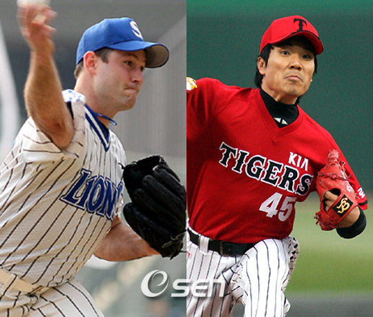 '싹쓸어 버릴테다' (삼성) '고춧가루 부대의 위력 보여줄게' (KIA) 2위를 노리는 삼성이 24일 KIA를 안방으로 불러 들여 주말 3연전을 벌인다. 삼성으로서는 내심 3연전 모두 승리를 거둘 태세다. 삼성은 외국인 에이스 제이미 브라운을 선발 투수로 내세운다. 올 시즌 9승 6패(방어율 3.34)를 기록 중인 브라운은 최근 5경기에서 위력적인 피칭을 뽐내며 3승 무패에 방어율 2.56을 마크했다. 브라운은 이날 승리로 시즌 10승을 노린다. 지난 17일 잠실 LG전서 왼쪽 발목 부상을 입었던 양준혁이 복귀한 것도 삼성의 승리 가능성을 높인다. '쌍권총' 권오준-권혁이 부상으로 2군에 내려갔지만 '난공불락' 오승환이 지키는 뒷문은 여전히 튼튼하다. 이에 맞서는 KIA는 이대진을 선발 등판시킬 예정. 5승 6패(방어율 5.33)를 기록 중인 이대진은 올 시즌 삼성전에 3차례 등판해 승리없이 3패(방어율 9.00)에 그쳤다. 이대진은 이날 삼성전 첫 승을 거둘 각오다. 장성호(타율 2할9푼1리 96안타 11홈런 53타점 44득점 8도루)-최희섭(타율 3할1푼7리 39안타 4홈런 30타점 12득점 2도루)-이현곤(타율 3할4푼 130안타 1홈런 31타점 50득점 3도루)으로 이어지는 중심 타선도 위협적이다. 홈런 선두 심정수와 빅리그 출신 최희섭의 장타력 대결도 이날 경기의 관심 거리. 25개의 아치를 쏘아 올리며 이 부문 선두에 오른 심정수는 4번 타자의 위력을 보여줄 태세. 홈런수는 4개에 불과하나 좋은 체격 조건(196cm 109kg)에서 뿜어나오는 장타력이 일품인 최희섭도 메이저리거 출신의 자존심을 세울 각오다. what@osen.co.kr 브라운-이대진.