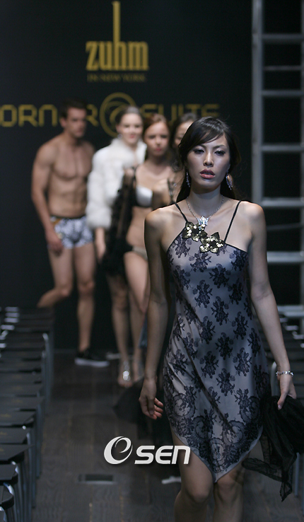만능 엔터테이너 엄정화가 코웰 패션주식회사와 함께하는 란제리 브랜드 'Zuhm in New York'과 'Corner Suite' 의 런칭쇼가 24일 서울 강남구 신사동에서 열렸다. 엄정화의 섹시하고 당당한 매력을 란제리에 표현한 'Zhum in New York'은 최고와 최신의 트렌드를 리드한다는 의미가 있다. 매력적인 모델이 상품을 선보이고 있다. /김영민 기자ajyoung@osen.co.kr