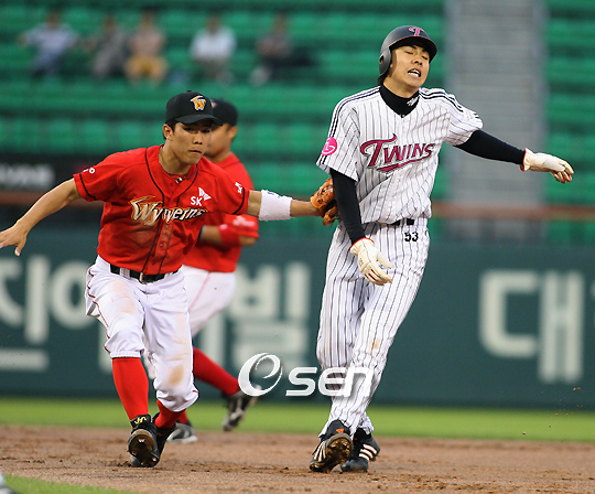 또 LG가 결정적일 때 SK의 벽을 넘지 못했다. 지난 24일 대역전패(5-13)로 상대 전적은 3승 10패가 돼버렸다. 어느덧 SK전 5연패다. 더 큰 난관은 아직도 SK전 맞대결이 5경기나 남아있다는 사실이다. 만약 LG가 4강 진입에 실패한다면 SK전을 망쳐서라 해도 과언이 아니다. LG의 SK전 약세는 두산전(7승 9패 1무)의 그것과도 맥을 같이 한다. 득점 응집력이나 불펜 등 확연히 드러나는 사실 외에 이 두 팀이 LG를 '호구'잡은 이유는 약점을 사정없이 할퀴어대기 때문이다. 바로 LG의 외야다. 좌익수 박용택-중견수 이대형-우익수 발데스로 구성된 LG 외야진은 거의 치명적이라 할 정도로 어깨가 약하다. 그리고 SK와 두산 타자들은 이 틈을 후벼 파고 있는 것이다. 두 팀은 자신들의 발과 LG 외야진의 '유리 어깨'란 2중의 조건을 십분 활용, 안타를 2루타로 만들어버리고 있다. 또 주자 2루에 두고, 단타는 무조건 득점이다. LG가 3-0 리드를 잡고도 대패로 끝난 24일 SK전은 그 본보기나 다름없었다. 반면 두산 민병헌이나 SK 김강민은 폭넓은 수비 범위와 송구 능력을 겸비하고 있다. 나머지 외야수들의 수비 능력도 최소한 LG 발데스보단 낫다. 또 LG의 팀 도루가 많지만 사실상 이대형(46도루) 한 명에게 쏠려있다. 나머지 선수들은 기동력 야구가 거의 안 되는 팀이다. 이는 LG가 올 시즌 KIA(11승 4패)나 현대(10승 6패 1무)에 유독 강했던 이유와도 부합한다. 두 팀은 기동력 야구가 가장 안 되는 팀이었다. LG 외야진의 약점을 후벼 팔 자원이 없었던 것이다. LG의 더 큰 고민은 이를 알아도 대체할 수 없는 점일 것이다. 박용택-이대형-발데스 없는 타순을 상상하기는 힘들다. 그러나 이 조합으로 SK, 두산의 발을 묶으려면 투수가 안타를 맞지 않기를 바라는 수밖에 없다. sgoi@osen.co.kr LG-SK전.