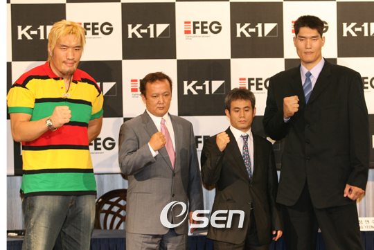 "표도르 등 종합 격투기 출신 선수 영입을 준비 중이다". K-1 주최사인 FEG는 27일 서울 삼성동 인터콘티넨달 호텔에서 기자회견을 갖고 K-1 월드그랑프리2007 서울 파이널 16 출전 선수 명단을 발표했다. FEG의 다니카와 사다하루 대표는 "이번 대회는 올 시즌 열리는 대회 중 가장 유명한 선수들이 참가하게 될 예정이다"면서 "아직 한 명은 결정되지 않았지만 조만간 팬들 투표로 결정될 것이며 다음주쯤 발표할 것이다"고 말했다. 오는 9월 29일 서울 올림픽공원에서 열리는 이번 대회에는 현재 전년도 우승자인 세미 쉴트를 비롯해 피터 아츠, 레미 보냐스키, 제롬 르 밴너 등 전년 베스트 8에 포함된 선수와 최홍만과 마이티 모 등 총 15명의 출전 선수가 확정됐고 나머지 한 명은 팬들의 투표로 결정되게 된다. 다니카와 대표는 "최홍만은 그동안 한국의 대표선수로 활동했는데 마이티 모에게 패하며 어려움을 겪었다. 꼭 승리를 거두길 기원한다"면서 "김영현은 오늘 처음 보았는데 최홍만이 보여줬던 모습을 꼭 다시 이루길 기원하겠다"고 전했다. 최홍만과 김영현의 대결 성사에 관한 질문에 다니카와 대표는 "두 선수의 대전은 K-1룰로 맞붙게 될 것이다"며 "김영현의 활약 여부에 따라 그 시기가 결정될 것이다. 내년이나 후년쯤 되지 않을까 예상한다"고 전했다. 최근 문제로 대두되고 있는 약물복용과 관련해 FEG의 입장을 질문하자 다니카와 대표는 "K-1에서도 소변검사로 약물 검사를 하고 있다"며 "위법으로 취급되고 있는 마약과 통증을 줄여주는 약물 등이 금지대상이며 만약 복용 사실이 적발되면 대전료 몰수 등의 조치를 취하고 있다"고 설명했다. 한편 표도르의 K-1 진출과 관련한 소문에 대해 다니카와 대표는 "프라이드가 소멸되고 있는 상황이기 때문에 그 선수들이 다른 곳으로의 이적을 타진하고 있다"며 "28일 일본에서 그러한 문제에 대해 기자회견이 열린다. 미국에서의 격투기가 상당히 호조를 보이고 있기 때문에 그들과 경쟁에서 꼭 승리한다는 보장이 없는 상황이다"고 말했다. 이어 그는 "확정된 것은 아니지만 K-1 히어로스 대회도 한국에서 개최할 계획도 가지고 있다"고 덧붙였다. 10bird@osen.co.kr 최홍만, 다니카와 사다하루 FEG 대표 프로듀서, 정연수 FEG 코리아 대표, 김영현이 나란히 포즈를 취하고 있다./김영민 기자ajyoung@osen.co.kr