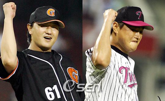[OSEN=이상학 객원기자] 롯데 손민한(32)과 LG 박명환(30)은 자타가 공인하는 현역 최고의 오른손 선발투수다. 고려대 시절부터 국제대회 에이스를 자처했던 손민한은 2005년 페넌트레이스 MVP에 오르며 명실상부하게 프로야구를 대표하는 선발투수로 자리매김했다. 지난 1996년 충암고를 졸업하고 바로 프로무대에 뛰어든 박명환도 지난해 4년간 총액 40억 원이라는 역대 FA 투수 최고액을 받는 조건으로 대형 FA 계약을 성사시키며 최정상급 투수로 공인받았다. 28일 잠실구장에서 손민한과 박명환은 최고의 선발투수들끼리 맞대결에 어울리는 투수전을 벌였다. 지난 16일 사직경기 이후 시즌 두 번째 선발 맞대결. 당시 대결에서는 손민한이 야수들의 보이지 않는 수비실책으로 4이닝 동안 9피안타 2볼넷 5실점으로 무너진 반면 박명환은 5⅔이닝을 던져 7피안타 2볼넷으로 2실점하며 기본은 해냈지만 이름값을 감안할 때 투구 내용은 만족스럽지 못한 편이었다. 이 때문에 두 투수의 이날 맞대결은 더욱 많은 관심을 모았다. 손민한은 9이닝을 던지며 5피안타 4볼넷 4탈삼진 1실점으로 LG 타선을 꽁꽁 묶었다. 손민한이 9이닝을 던진 건 올 시즌 처음. 1회에서 3회까지 제구력이 잡히지 않아 공을 48개나 던지며 고전한 손민한은 고비를 넘긴 후에는 거칠 것이 없었다. 4회부터 8회까지 불과 46개의 공을 던지는 경제적인 피칭으로 마운드를 책임졌다. 특히 위기 때마다 땅볼을 유도하는 체인지업과 낮은 코스를 찌르는 제구력으로 3차례나 병살타를 이끌어내는 노련함을 발휘했다. 게다가 9회까지 시속 142km를 찍을 정도로 구위도 훌륭했다. 비록 승패는 없었지만 투구 내용만을 놓고 볼 때에는 올 시즌 최고라 할 만한 피칭이었다. 박명환은 7이닝 동안 125구를 던지며 6피안타 4볼넷 5탈삼진 1실점으로 롯데 타선을 틀어막았다. 이날 박명환의 백미는 7회초였다. 정수근과 이인구에게 연속으로 볼넷을 허용하며 위기를 자초한 박명환은 박현승을 땅볼로 처리한 후 계속된 2사 2·3루 위기에서 롯데 4번 이대호와 마주했다. LG 김재박 감독은 양상문 투수코치를 마운드에 올려 의견을 교환했다. LG와 박명환의 선택은 정면 승부. 최근 이대호의 타격감이 좋지 않은 것도 한 요인이었지만 이대호의 상징성을 감안하면 쉽지 않은 선택이었다. 하지만 박명환은 볼카운트 1-3라는 불리한 상황에서 이대호를 3루 땅볼로 처리하며 자신의 소임을 다했다. 이로써 손민한은 올 시즌 25경기에서 160이닝 11승 9패 방어율 3.54를 마크하게 됐다. 퀄리티 스타트는 15차례. 위력이 예년만 못하다는 평이 많지만 경기당 평균 투구이닝에서 리그 전체 3위(6.4이닝)에 랭크될 정도로 이닝이터의 면모를 과시하고 있다. 구위가 좋지 못하더라도 경기를 이끌어나가는 마운드 운영능력은 최고라는 평. 박명환 역시 23경기에서 139이닝 10승4패 방어율 3.11이라는 수준급 성적을 마크했다. 퀄리티 스타트는 17차례로 리그에서 3번째로 많다. 시속 150km에 육박할 정도로 볼 스피드가 여전하지만 ‘존경하는 선배’ 손민한처럼 치고 빼는 강약 조절에도 눈을 뜨며 최고의 전성기를 맞이했다는 분석이다. 이날 둘은 투수전이란 무엇인가를 보여줬다. 오랜만에 나온 '투수전의 백미'였다.