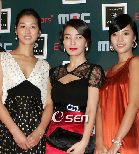 MBC 주말드라마 제작 보고회가 정세호 PD 주연배우 박선영 이태곤 윤상현 장신영 황정음등이 참석한 가운데 5일 강남 메리츠 타워에서 열렸다. 는 김수현 작가의 동명소설을 각색한 작품으로 원작자 김수현 작가가 직접 감수를 맡고 정세호 PD가 연출을 맡아 '고부갈등'이라는 소재로 1992년 아침드라마로 만들어진데 이어 2007년 새로운 버전으로 선보인다. 장신영 박선영 황정음(왼쪽부터)이 포토타임을 갖고 있다. /황세준 기자 storkjoon@osen.co.kr