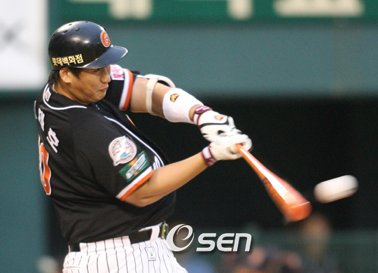"진짜 홈런왕에 욕심없어요. 제 목표는 이미 물건너갔습니다". 지난 5일 사직 현대전서 시즌 24호 우월 솔로 아치를 터트리며 이 부문 선두를 달리고 있는 심정수(32, 삼성 외야수)와 2개 차로 접근한 이대호(25, 롯데 1루수)는 다소 엉뚱한(?) 대답을 내놓았다. 지난 시즌 26개의 아치를 쏘아 올리며 생애 첫 홈런왕 타이틀을 거머쥔 이대호는 이날 경기서 홈런포를 작렬하며 4강 좌절의 아쉬움을 분풀이했다. 0-4로 뒤진 롯데의 4회초 공격. 이인구와 박현승이 삼진으로 물러나 2사 주자 없는 상황에서 두 번째 타석에 들어선 이대호는 상대 선발 김수경의 초구(140km 직구)를 그대로 밀어쳤다. 타구는 우측 담장을 넘는 110m 짜리 솔로 아치. 이대호는 "직구를 노리고 있었지만 타이밍이 늦어 홈런이 될 줄 몰랐다. 운이 좋았다"고 설명했다. 지난달 30일 잠실구장에서 벌어진 LG 원정전서 1회초 공격 때 1사 1,3루서 좌완 이승호를 상대로 좌월 3점 홈런(비거리 120m)을 뽑아낸 뒤 3경기 만에 대포를 가동했다. "정말 홈런왕에 관심이 없냐"고 몇 번이고 물었으나 그의 대답은 한결 같았다. 이대호는 "내 목표는 4강 진출이었다"며 "이미 물 건너 갔다. 솔직히 지금 심정으로는 (홈런왕에 대한) 욕심이 생기지도 않는다"고 전했다. 팀의 4강 진출이 무산된 상황에서 개인 타이틀을 한 번쯤 노려볼 만하지만 이대호는 달랐다. 자신보다는 항상 팀을 먼저 생각하는 모습 때문에 이대호를 스타라고 부르는 것은 아닐까. what@osen.co.kr