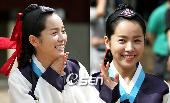 MBC 창사 46주년 특별기획 드라마 '이산' 제작보고회가 7일 용인시 MBC 문화동산 오픈세트장에서 열렸다. '이산'은 18세기 후반 파란만장하고 굴곡진 인생을 살았던 조선조 제22대 임금 정조(正祖) 이산(李蒜)의 극적인 인생 속 기다림과 좌절, 빛나는 업적과 안타까운 사랑을 담은 드라마다. 한지민이 깜찍한 표정을 짖고 있다. /황세준 기자 storjoon@osen.co.kr