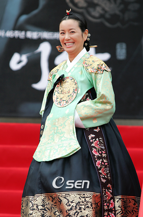 MBC 창사 46주년 특별기획 드라마 '이산' 제작보고회가 7일 용인시 MBC 문화동산 오픈세트장에서 열렸다. '이산'은 18세기 후반 파란만장하고 굴곡진 인생을 살았던 조선조 제22대 임금 정조(正祖) 이산(李蒜)의 극적인 인생 속 기다림과 좌절, 빛나는 업적과 안타까운 사랑을 담은 드라마다. 정조임금의 모후역을 맡은 견미리가 환하게 웃으며 무대인사를 위해 단상에 내려오고 있다. /황세준 기자 storjoon@osen.co.kr