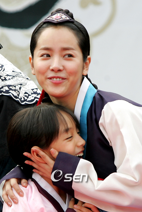 MBC 창사 46주년 특별기획 드라마 '이산' 제작보고회가 7일 용인시 MBC 문화동산 오픈세트장에서 열렸다. '이산'은 18세기 후반 파란만장하고 굴곡진 인생을 살았던 조선조 제22대 임금 정조(正祖) 이산(李蒜)의 극적인 인생 속 기다림과 좌절, 빛나는 업적과 안타까운 사랑을 담은 드라마다. 한지민이 자신의 아역을 맡은 이한나를 귀여운 듯 꼭 끌어안고 있다. /황세준 기자 storjoon@osen.co.kr