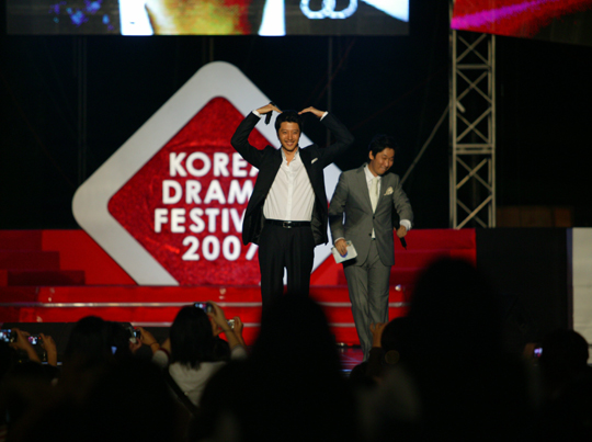 아시아의 연인 영화배우 이동건이 1만 여명의 팬들과 만났다. 경남 진주에서 열리고 있는 국내 최초 국제 드라마축제 ‘2007 코리아드라마페스티벌’에서 ‘신 한류 4대 천왕’으로 불리는 이동건이 '한류스타와의 만남' 첫 주자로 나섰다. 이동건은 드라마 ‘파리의 연인’ ‘유리화’로 아시아의 많은 팬을 확보하고 있다. 7일 오후 30분 진주성 특설무대에서 이루어진 ‘한류스타와의 만남’은 ‘아시아의 연인 이동건’이란 타이틀로 진행됐다. 국내 팬들은 물론 일본에서도 수백 명의 팬들이 방문했다. 진주에서 이동건과 팬들의 만남을 축하하기 위해 스페셜 게스트로 씨야 SG워너비도 자리를 함께 했다. 이동건은 무대에 등장해 생각보다 많은 관객들의 모습에 당황스러워하면서도 기쁨을 감추지 못했다. ‘드라마 속 명장면 명대사’라는 테마의 동영상 상영 중 연인 한지혜와 함께 했던 드라마 ‘낭랑 18세’의 장면이 나오자 무릎을 치며 웃음을 터트리기도 했다. 자신에게 가장 뜻 깊었던 드라마로 ‘낭랑 18세’를 꼽기도 했다. 5일부터 시작한 ‘2007 코리아드라마페스티벌’은 8일 ‘앙드레김 드라마 패션쇼’와 9일 ‘윤석호 스페셜 사계절 드라마 콘서트’ ‘드라마 OST 멀티미디어 불꽃쇼’ 등의 행사를 남겨두고 있다. 오는 9일 막을 내린다. crystal@osen.co.kr