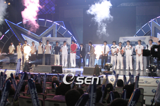 별들의 축제 프로리그 2007 올스타전에서 김가을 삼성전자 감독이 이끄는 도전팀이 웃었다. 별중의 별인 MVP는 '황제' 임요환(27, 공군)이 차지했다. 임요환은 역대 올스타전에서 4패뒤에 처음으로 승리하며 MV P를 받는 기쁨을 배가시켰다. 8일 서울 능동 어린이대공원 돔아트홀 특설무대에서 열린 '신한은행 프로리그 2007' 올스타전에서 도전팀은 최연성, 임요환, 이제동 마재윤 등 신구조화를 앞세워 열정팀을 5-2로 꺾고 승리를 했다. 경기 전 전기리그 결승전 다짐했던 조정웅 감독은 팀 패배와 함께 감독특별전도 패하는 비운을 겪어야했다. 쟁쟁한 18명 선수들이 경합을 벌인 MVP는 '황제' 임요환이 받았다. 영원한 맞수인 홍진호와 61번째 임진록에서 승리를 거둔 임요환은 기자단 투표에서 유효표 11표 가운데 6표를 받아 마재윤(3표)과 최연성(1표) 이제동(1표)를 압도적으로 누르며 '황제'의 자존심을 지켰다. 처음으로 MVP에 선정된 임요환은 상금 200만을 받았다. 5-2 완승을 거둔 도전팀은 선봉으로 나선 '괴물' 최연성이 시원한 탱크 물량을 선보이며 '천재' 이윤열을 격파, 승리의 발판을 마련했다. 이어 출전한 2경기는 '황제' 임요환이 61번째 치뤄진 '임진록'에서 '폭풍' 홍진호를 잠재웠다. 홍진호는 '폭풍'같은 몰아치기로 승기를 잡았지만, 역전을 허용하며 또 다시 임요환에게 무릎을 꿇었다. 임요환은 위기상황에서 포기하지 않는 군인 정신으로 역전에 성공, 팬들의 뜨거운 박수를 받아냈다. 열정팀도 그냥 당하지는 않았다. 0-2로 뒤진 3경기에 출전한 서기수-강민 조합은 박지호-이승훈 조합의 호흡에 고전을 면치못했지만, 서기수의 뚝심있는 경기력과 오뚜기같이 살아난 강민의 활약을 바탕으로 역전승을 거두며 반격을 시작했다. 4경기서도 변형태가 난타전 끝에 김준영을 제압하며 2-2 동점에 성공, 승부를 원점으로 돌렸다. 도전팀은 동점을 허용했지만 당황하지 않았다. 도전팀은 이제동, 심소명-김윤환 조합, 마재윤이 5, 6, 7경기를 내리 쓸어담으며 5-2 완승을 거뒀다. ◆ 신한은행 프로리그 2007 올스타전. ▲ 도전(김가을 감독) 5-2 열정(조정웅 감독). 1경기 최연성(테란. 5시) 승 이윤열(테란, 11시). 2경기 임요환(테란, 7시) 승 홍진호(저그, 1시). 3경기 박지호(프, 11시)/이승훈(프, 11시) 서기수(프, 7시)/강민(프, 5시) 승. 감독특별전 김은동(저, 11시)/김가을(프, 1시) 조정웅(테, 7시)/이지호(테, 5시). 4경기 김준영(저그, 1시) 변형태(테란, 7시) 승. 5경기 이제동(저그, 9시) 승 진영수(테란, 5시). 6경기 심소명(저, 11시)/김윤환(테, 7시) 승 박정석(프, 5시)/조형근(저, 1시). 7경기 마재윤(저그, 1시) 승 송병구(프로토스, 11시). scrapper@osen.co.kr