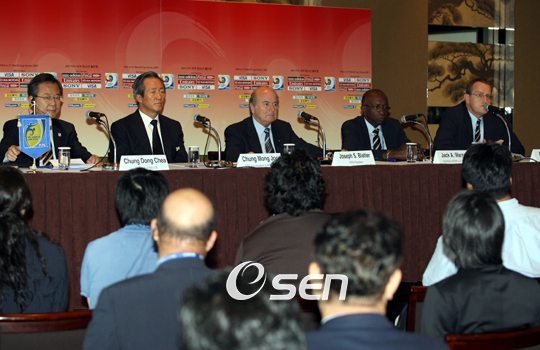 '경기력은 만족, 관중 수는 아쉬워'. FIFA가 한국에서 열린 U-17 월드컵에 대해 어느 정도 만족감을 표시했다. FIFA는 9일 그랜드하얏트 호텔에서 기자회견을 가지고 U-17 월드컵을 결산했다. 이 자리에는 조셉 블래터 FIFA 회장을 비롯해 정몽준 FIFA 부회장, 정동채 U-17 월드컵 조직위원장 등이 참석했다. 블래터 회장은 "이번 대회에 처음으로 24개국이 참가했다" 며 "많은 지원과 관심을 가져준 한국 조직위원회와 국민들에게 감사한다" 고 전했다. 이어 잭 워너 부회장은 "경기당 3.2 골이 터지는 등 좋은 경기력을 보였다. 또한 도핑테스트에서 단 한 건의 양성 반응도 나오지 않는 등 축구의 미래가 밝은 것을 봤다" 고 말했다. 또 "여러 가지 기후 조건 등으로 인해 관중들의 수가 예상보다 적었는데 오늘 저녁 열릴 3~4위전과 결승전에 5만 명 이상이 올 것으로 기대하고 있다" 고 얘기했다. 정몽준 부회장은 아시아 축구가 퇴보하고 있는 것을 걱정했다. 그는 "이번 대회에서 아시아 축구가 적지않은 충격을 받았다" 면서 "이대로 가다가는 아시아 축구와 세계 축구의 간극이 멀어질 것이다. 뭔가 대책이 필요하다" 고 말했다. 정동채 조직위원장은 관중이 적은 것에 대해 "34~35도까지 올라가는 날씨와 대표팀의 부진으로 인해 관중이 덜 찾아왔다" 고 분석했다. 하지만 그는 "이번 대회를 통해 유소년에 대한 관심이 높아졌다. 앞으로 세계 축구 발전에 기여할 것이다" 고 희망을 내비치기도 했다. bbadagun@osen.co.kr 김영민 기자 ajyoung@osen.co.kr