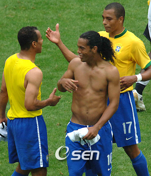 브라질이 호나우디뉴의 결승골에 힘입어 미국을 4-2로 눌렀다. 브라질은 10일 오전(이하 한국시간) 시카고에서 열린 미국과의 친선 경기에서 역전승을 거뒀다. 브라질의 시작은 힘들었다. 브라질은 전반 20분 카를로스 보카네그라에게 골을 내주며 끌려갔다. 보카네그라는 랜던 도노번의 코너킥을 골로 연결하며 선제골을 기록한 것. 그러나 미국의 리드 상황은 그리 오래가지 못했다. 전반 33분 카카의 슛이 팀 하워드 골키퍼에게 막혔으나 튕겨져 나온 공이 미국의 수비수 오구치 오니유의 몸을 맞고 들어간 것. 후반 들어 브라질은 역전에 성공한다. 후반 8분 호나우디뉴의 코너킥을 수비수 루시우가 멋진 헤딩골로 연결한 것이다. 그러나 미국도 만만치는 않았다. 후반 28분 클린트 뎀프시가 동점골을 만든 것이다. 2-2 상황에서 브라질을 구한 것은 '외계인' 호나우디뉴였다. 호나우디뉴는 후반 30분 그림같은 프리킥을 성공시키며 역전에 성공했고 브라질은 인저리 타임 한 골을 더 넣으며 4-2의 승리를 마무리지었다. bbadagun@osen.co.kr
